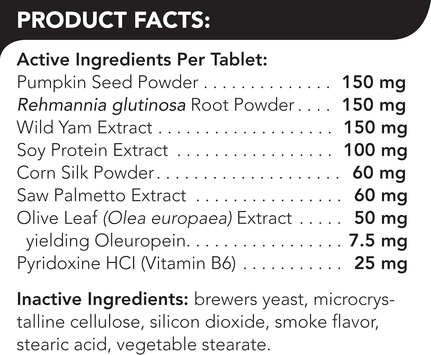Bladder strength for dogs contains pumpkin seed powder, Rehmannia glutinosa, wild yam extract, saw Palmetto, and olive leaf extract. The combination of these ingredients supports normal hormone levels, renal function and bladder muscle strength. Bladder strength is safe for long-term daily use.