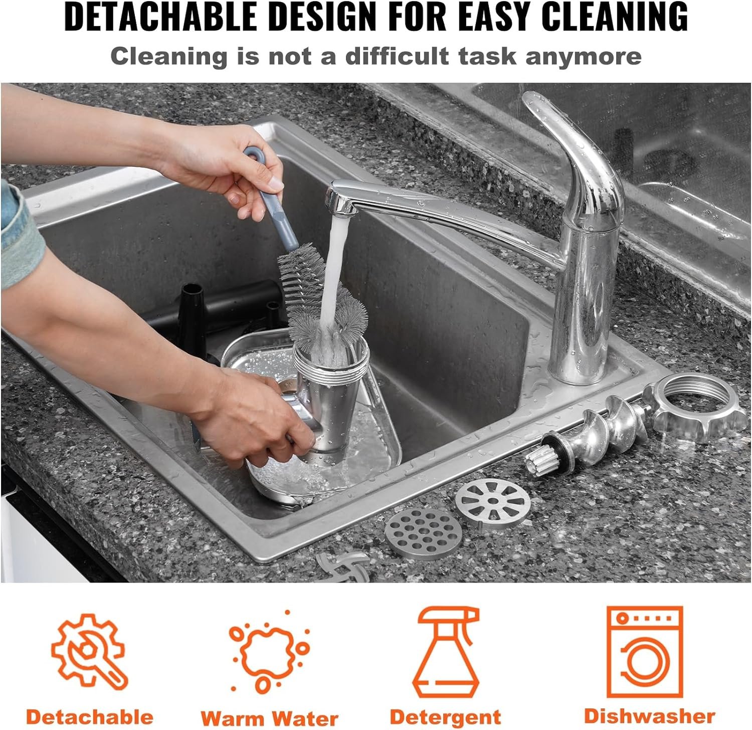 Cleaning is A Breeze: All parts are detachable for cleaning, stainless steel accessories can be directly thrown into the dishwasher machine, and the rest of the accessories can be cleaned with a complimentary cleaning brush or wet towel with water and a small amount of detergent.