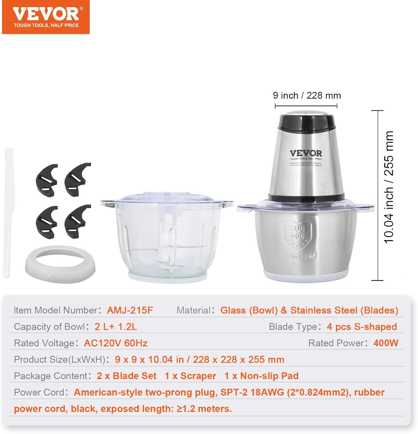 Healthy and BPA-free: Our food processor has two bowls (2000 ml/8 cup glass bowl + 1200 ml/5 cup stainless steel bowl) that prioritize your well-being. Crafted without harmful BPA, you can now prepare mouthwatering meals for your entire family without any worries about health risks.