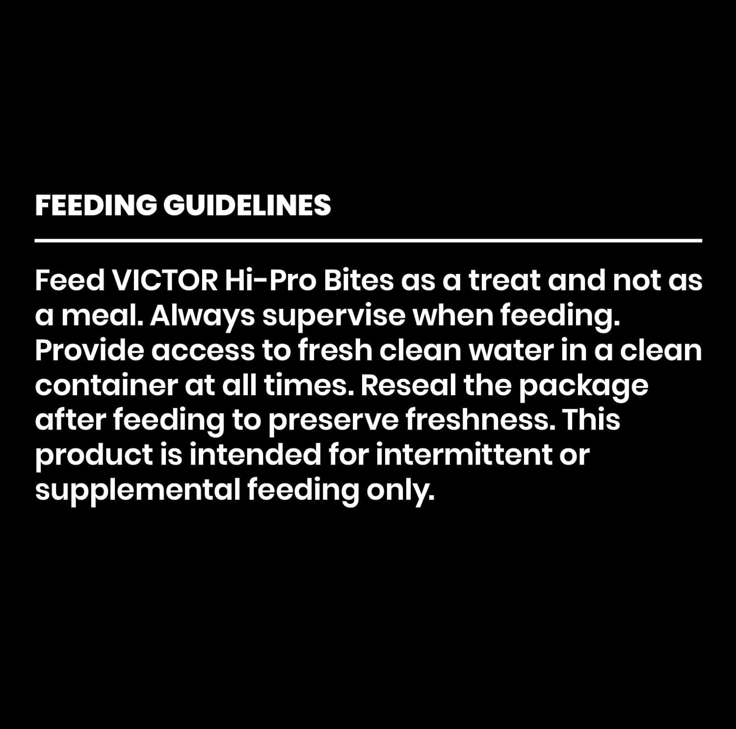 HI-PRO BITES DOG TREATS: VICTOR Hi-Pro Bites dog treats are a high protein, tender dog treat, that is ideal for training and treating dogs of any age and breed through all life stages.