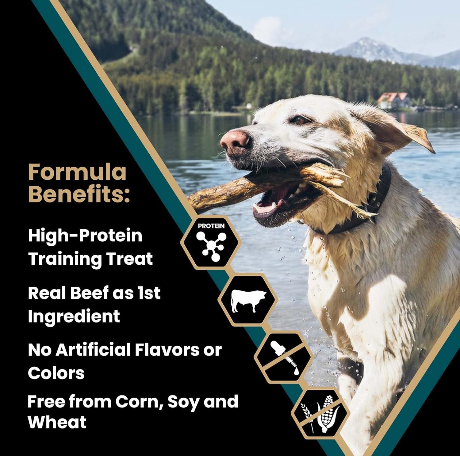 REAL BEEF PROTEIN: Featuring real, high-quality beef as the first ingredient, Hi-Pro Bites are a high protein, tender and tasty treat and contain no artificial colors or flavors and are free from corn, soy and wheat.