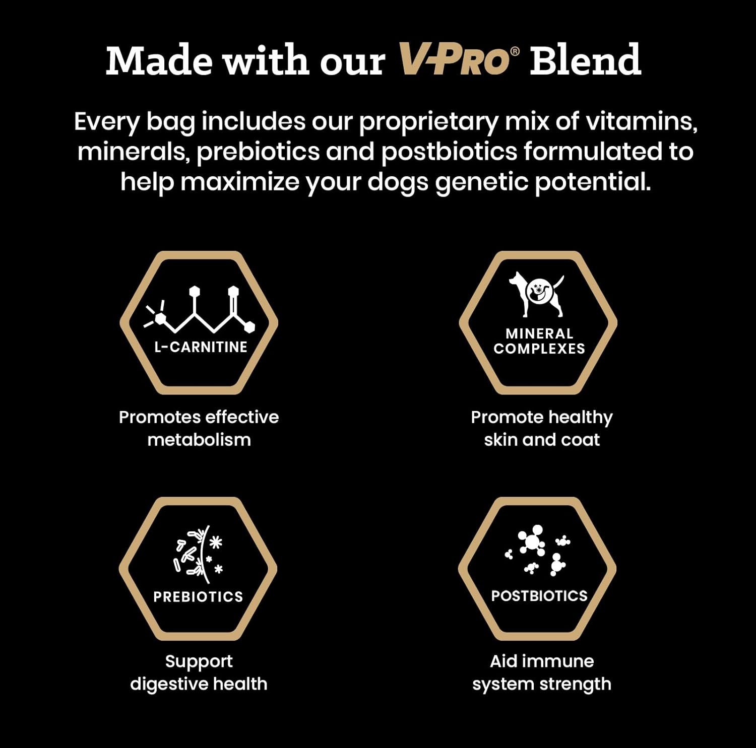 PROPRIETARY VPRO BLEND: All VICTOR dog treats are made with our VPRO Blend – a proprietary mix of vitamins, minerals, and nutrients that support effective metabolism, immune system strength, digestive health and healthy skin and coat.