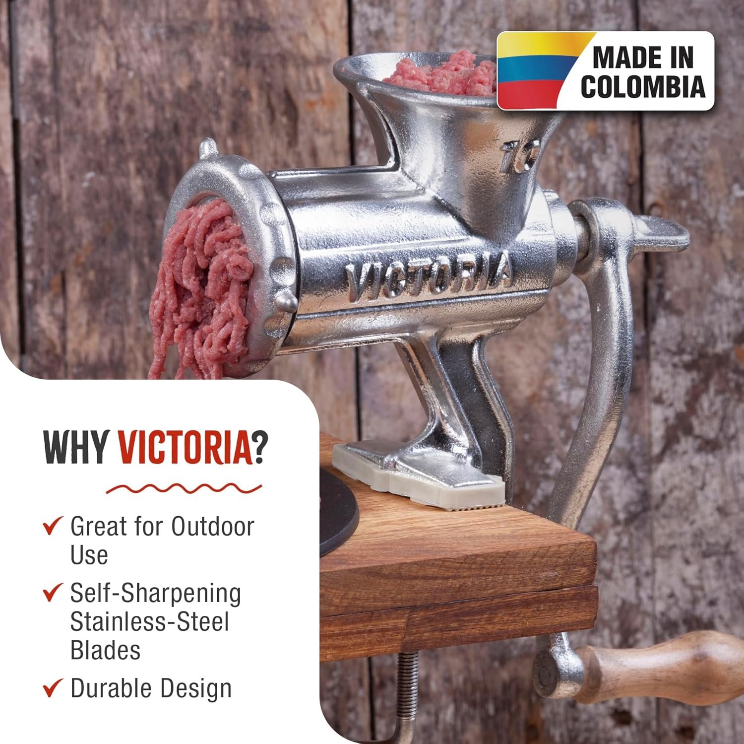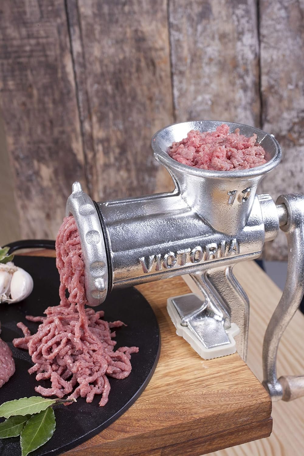 Victoria Manual Meat Grinder and Sausage stuffer, Cast Iron Sausage Maker and Meat Mincer, Number 10, Table Clamp Mounted Grinder