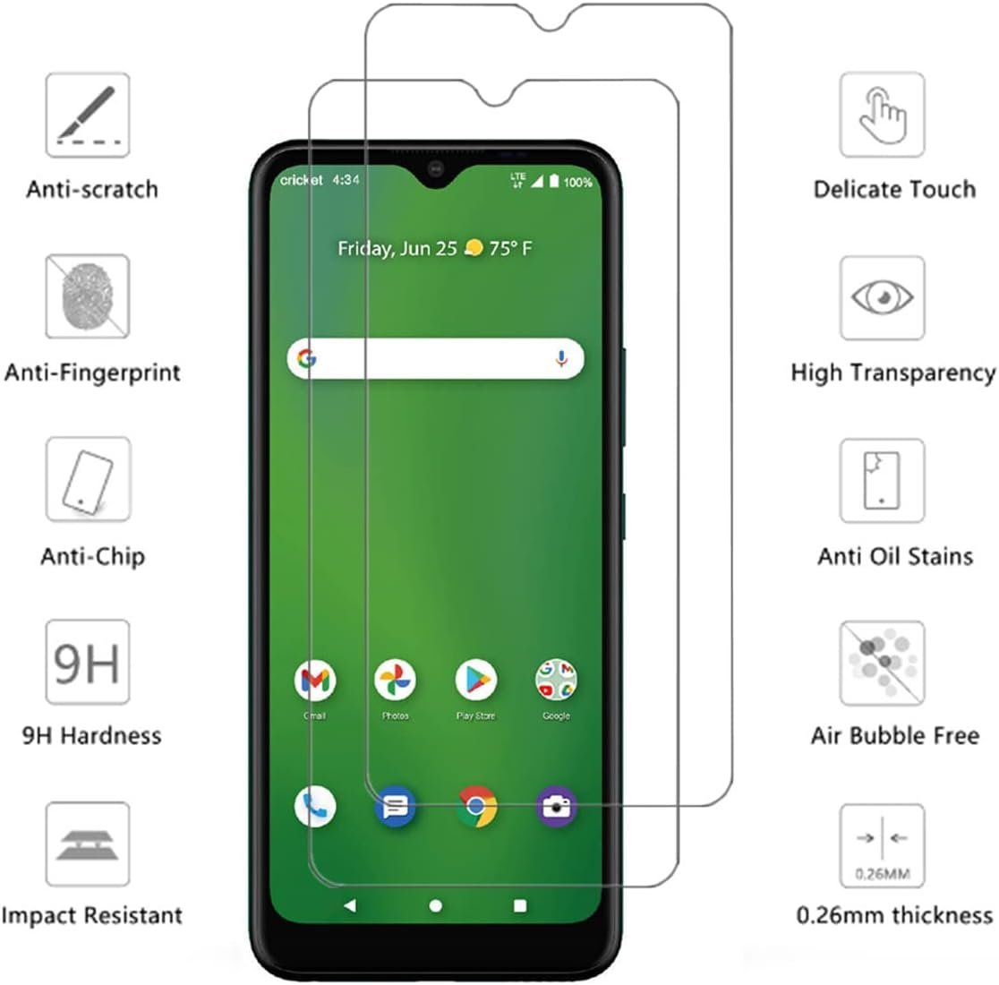 Specification: Explosion-proof, shatter-resistant glass breaks into small pieces , more secure than other glass products. Surface hardness: The surface has a hardness of 8-9h. So It’s about 9H hard than other glass products. Screen Protector Surface is anti-oil processing , so fingerprint and oil aren’t easy to stay surface. It’s easy to clean. Works with: for AT&T Moticate Max (U668AA) Package include: 2x Glass Screen Protector 2x Wet/Dry Wipes 2x Dust Dust-absorber and Installation and Use Guidance.