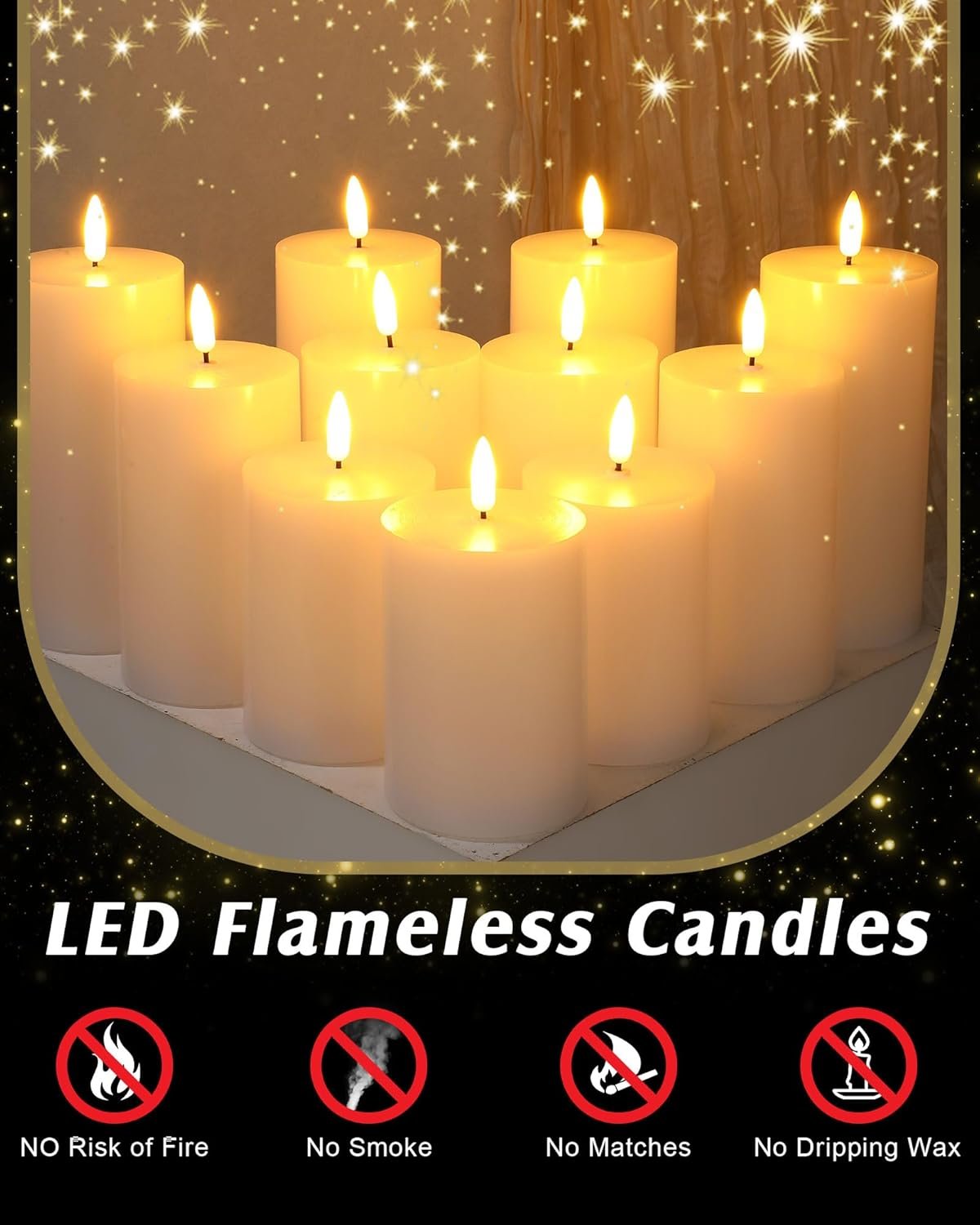 Elegant Decor and Gift: flickering flameless candles are very realistic and can create a warm atmosphere, nice for outdoor lanterns, family gatherings, home decoration, weddings, fireplaces, festivals and as Christmas gifts choice
