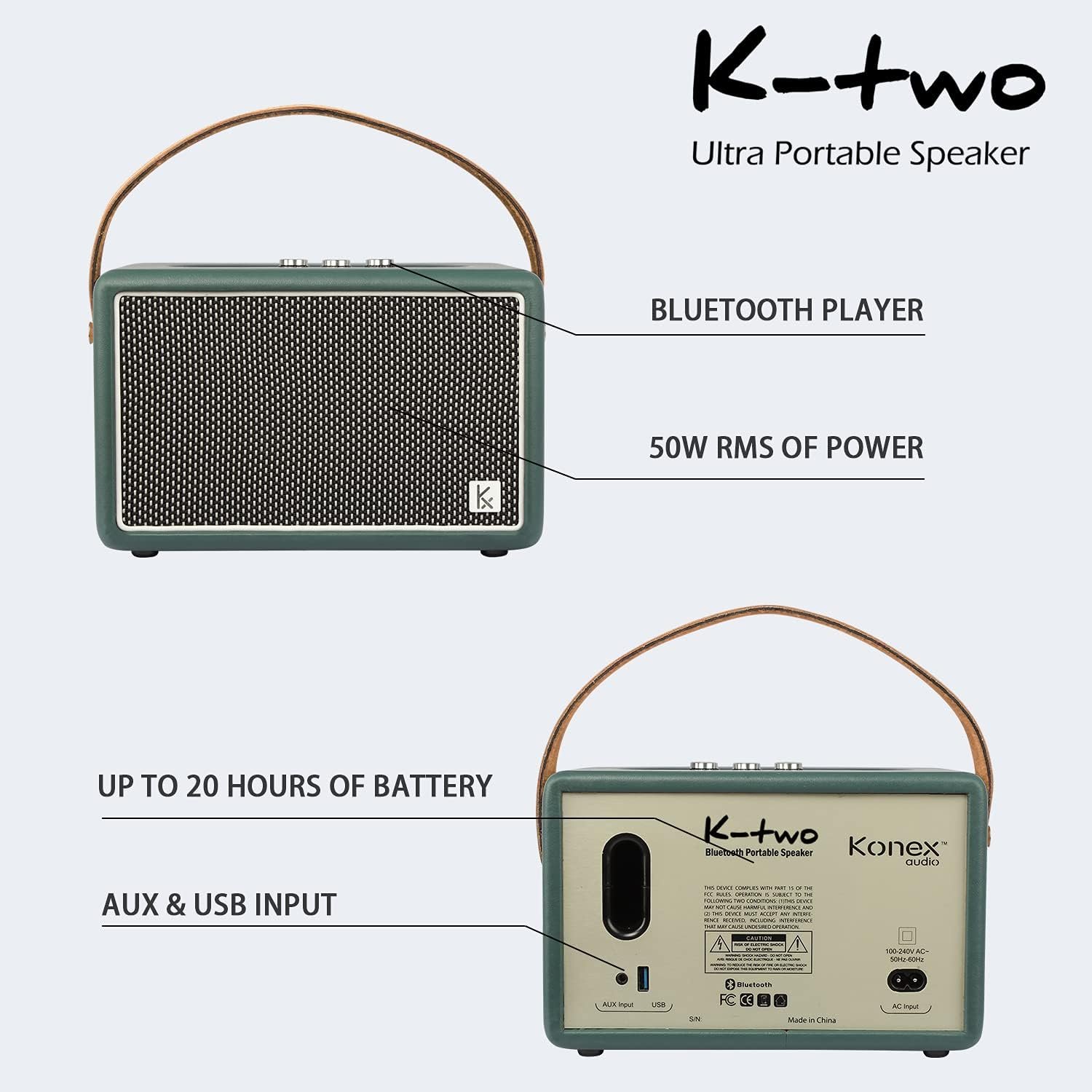 RETRO STYLED BLUETOOTH SPEAKER—Konex retro styled bluetooth speaker with rotary knob which blends modern technology and retro classic aesthetics, which matches seamlessly with the texture of your leather furniture around your house.