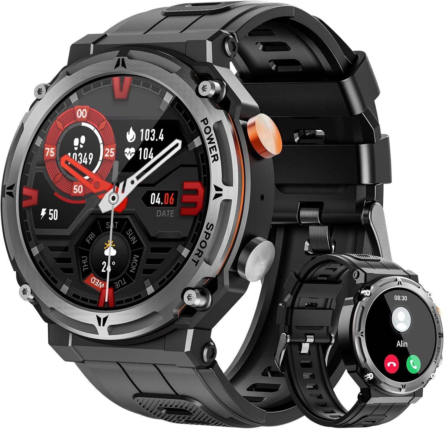 100+ Sport Modes & 24H Health Monitor: With an expansive selection of over 100 sport mode, including walking, running, mountaineering, cycling, and basketball , VIRAN tactical smartwatch becomes your personal coach. Take charge of your well-being 24/7. With continuous heart rate, blood pressure, and sleep monitoring, you can track your health and fitness goals effectively. Stay proactive about your wellness.