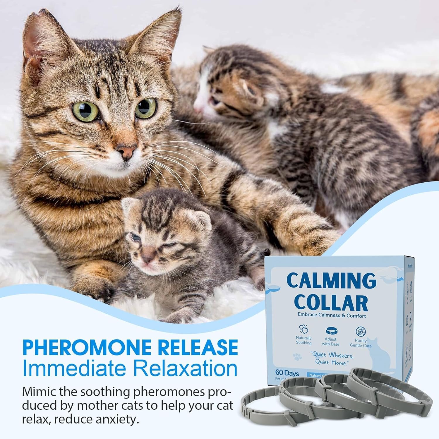 [Reliable, Long-Term Serenity]: Keep your home tranquil with the Virine Cat Calming Collar 4-Pack. Designed for prolonged effectiveness, each collar offers up to 60 days of serenity, perfect for reducing anxiety during frequent travels or daily disturbances, ensuring your cat remains calm and content no matter the scenario.