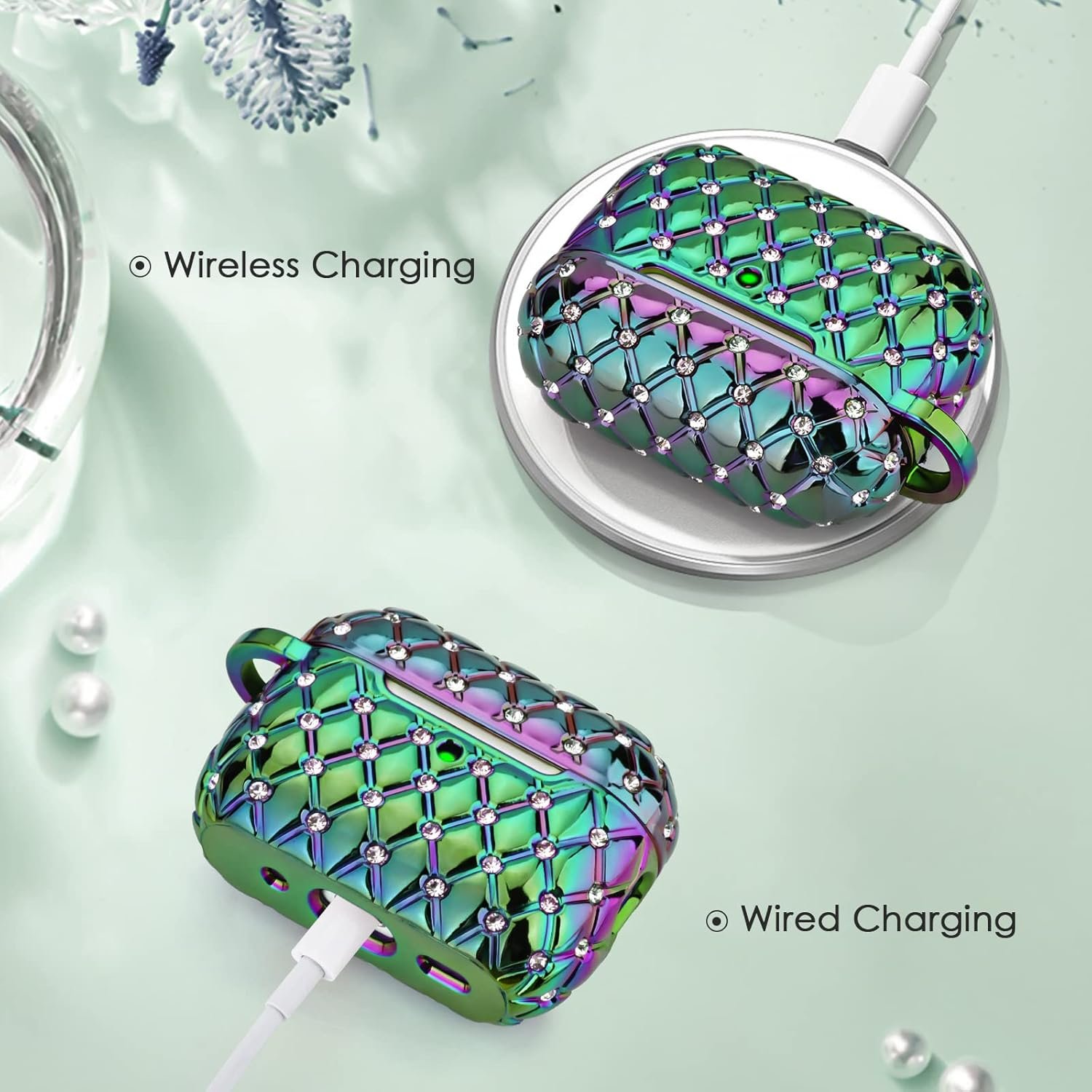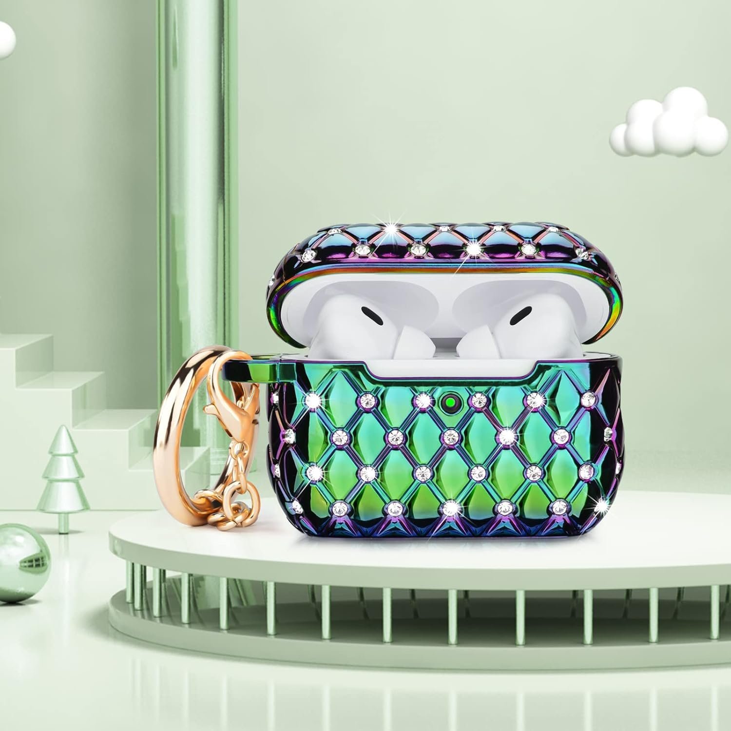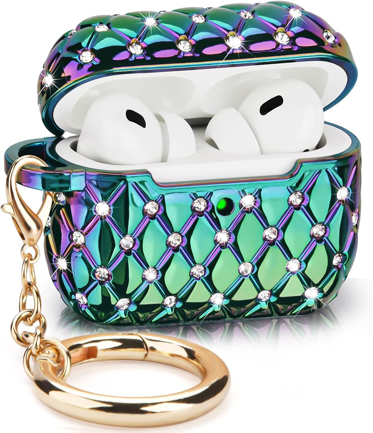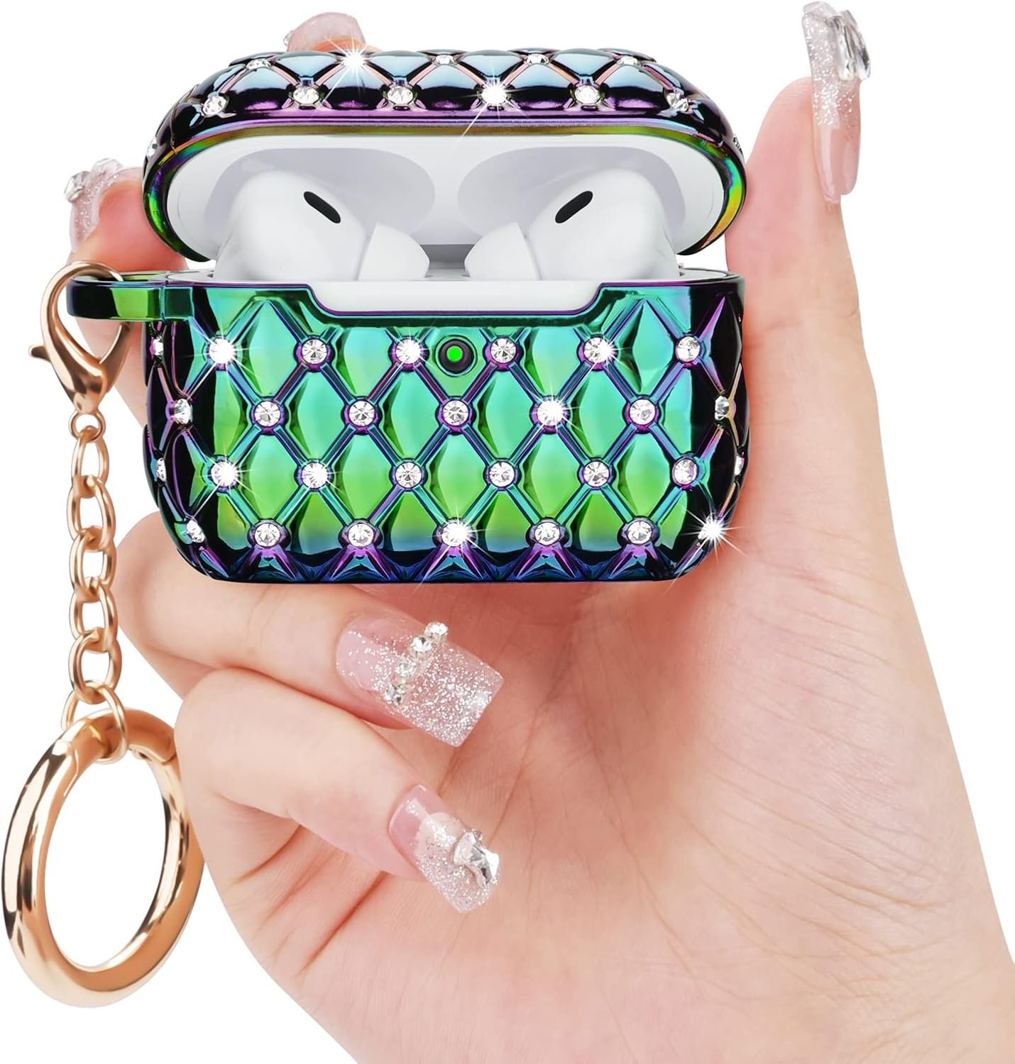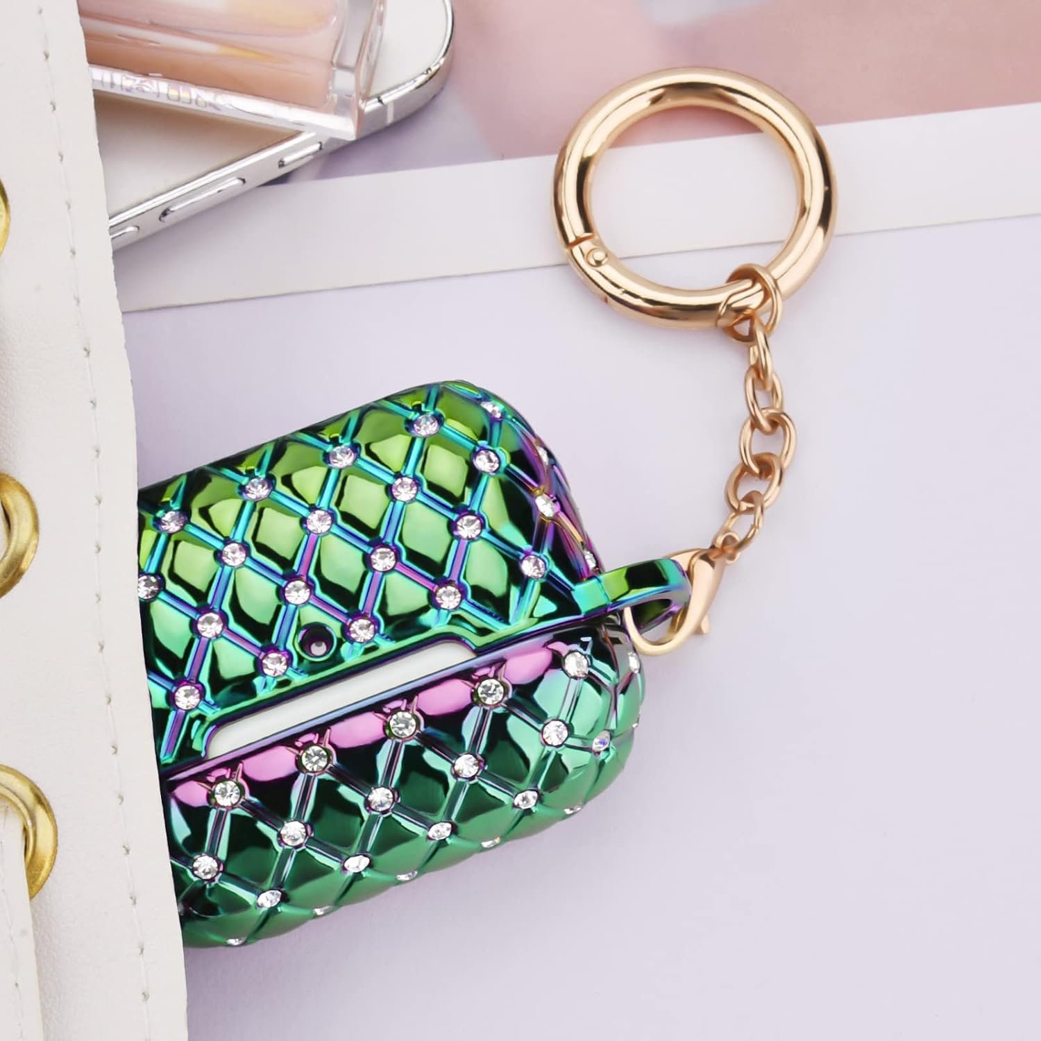 Pretty Cute Design Case for AirPods Pro 2 – Our AirPods Pro 2 case with the clear hard PC material with colorful pearl luster and bling rhinestones, which creates a girly sleek look. And the rose gold keychain makes your AirPods look unique and fashionable when you attach it to your key, belt, bags, and so on