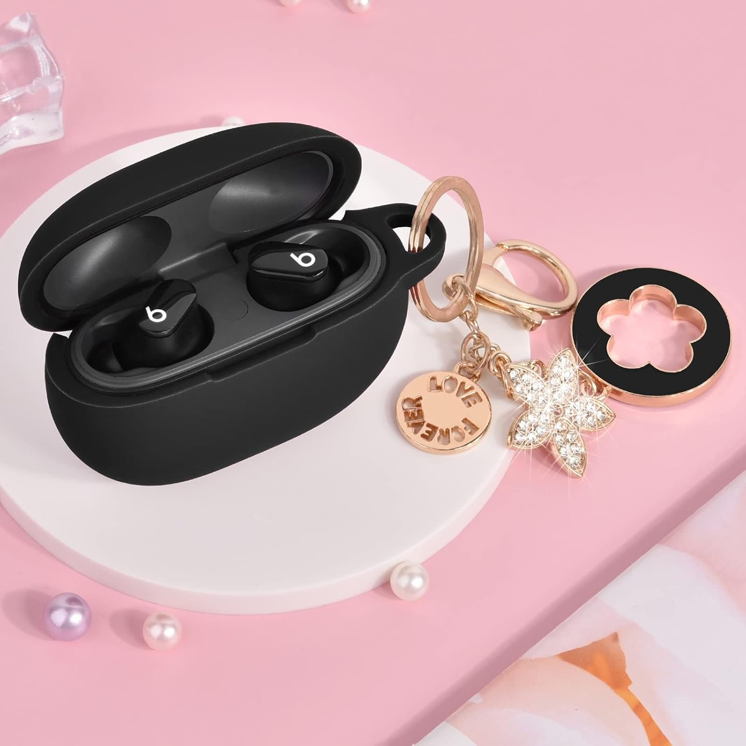 【UNIQUE DESIGN CASE FOR Beats Studio Buds】: Newest cute and bling five-leaf clover Keychain design makes your Beats Studio Buds Wireless Bluetooth Headset look unique and fashionable when you attach it to your key, belt, bags, and so on