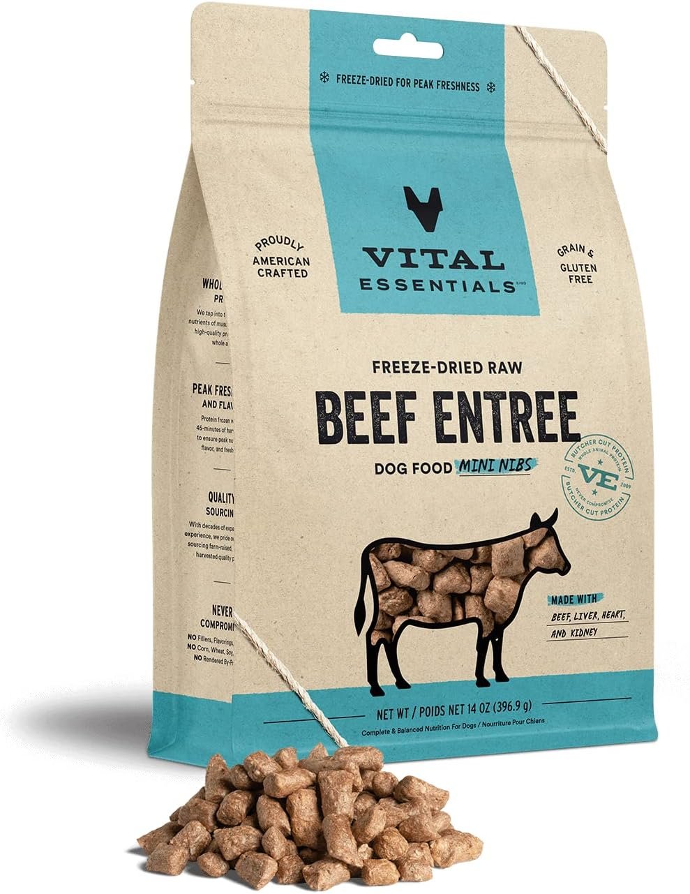 FREEZE-DRIED RAW BEEF DOG FOOD: Vital Essentials Freeze Dried Dog Food packs more protein than industry standard into every bite to deliver the peak vitality your dog deserves, especially when compared to dehydrated dog food. Our complete and balanced freeze-dried raw dog food is high in butcher cut premium beef, responsibly sourced in the USA.