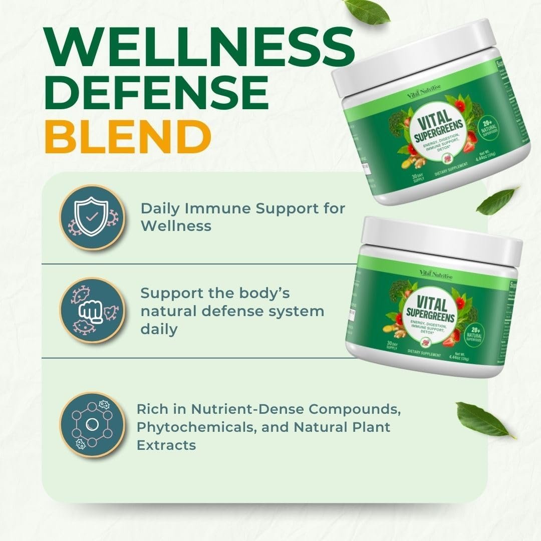 Daily Wellness Support: This greens powder is designed to support overall health and well-being with a nutrient-rich blend of plant-based ingredients, helping you maintain a balanced and active lifestyle.