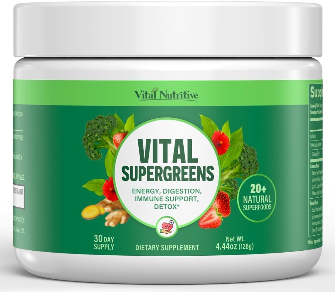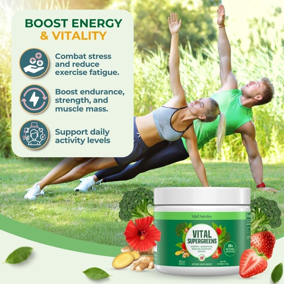 Boost Energy & Vitality: Vital Super Greens is your daily greens powder, designed to enhance energy and vitality, and those with high activity levels. Packed with superfoods, it supports sustained energy throughout the day.