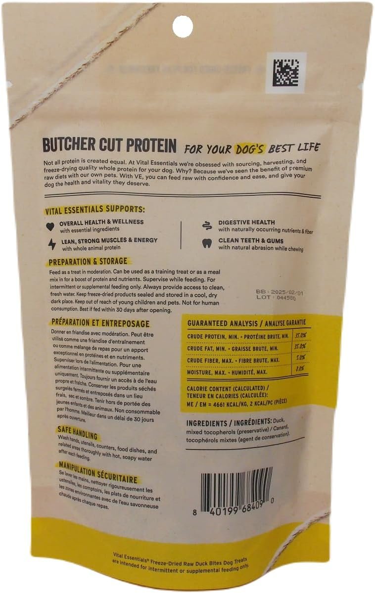 Bundle Includes: Vitale Essentialss Freeze-Dried Raw Dog Treats 3 Flavor Variety – (1) Each: Duck Bites, Rabbit Bites, Beef Liver (2-2.1 Ounces) – Plus Mammoth Rope Toy; Bundle Includes: MerlinsMart Furry Family Friends 40 Fun & Useful Animal Facts Your Family Will Love Booklet. Gluten Free; Grain Free; Limited Ingredients; Made in the USA; Serve dry as a treat or moisten to supplement a meal. Interactive Mammoth minty dental rope toy; (color will vary); Convenient 3 flavor variety sampler. This item is not a manufacturer-created variety pack and will not be sent in the original manufacturer’s packaging.