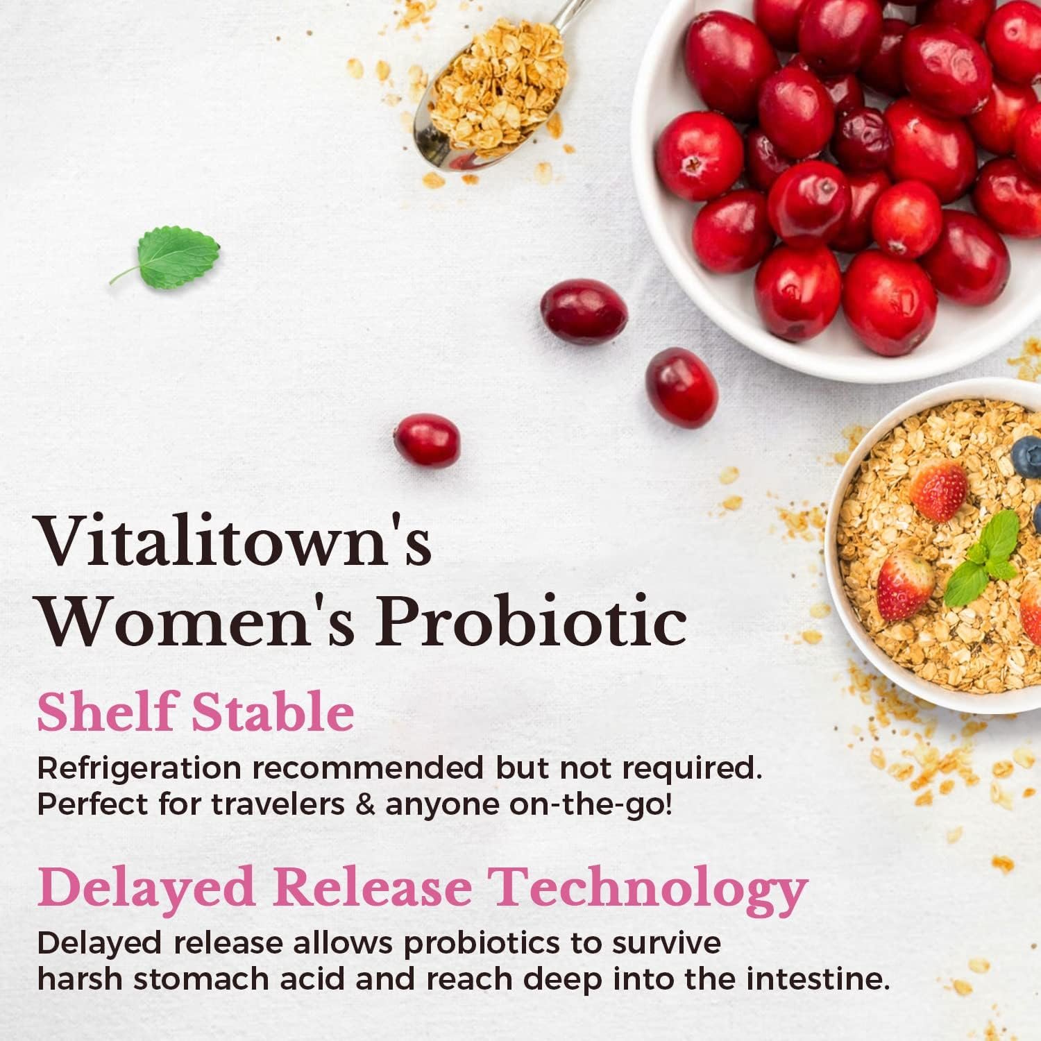 120 Billion CFUS & 30 Strains Per Capsule: Vitalitown Women’s Probiotics contains 120 billion CFUs and 30 proven strains, providing the highest number of CFUs and the most researched probiotics strains. The formula is specially designed for women’s specific health needs with unsurpassed quality & value. All Vitalitown products are 100% vegan and contain no GMOs, gluten, dairy, soy, eggs, fish, shellfish, tree nuts, or peanuts.