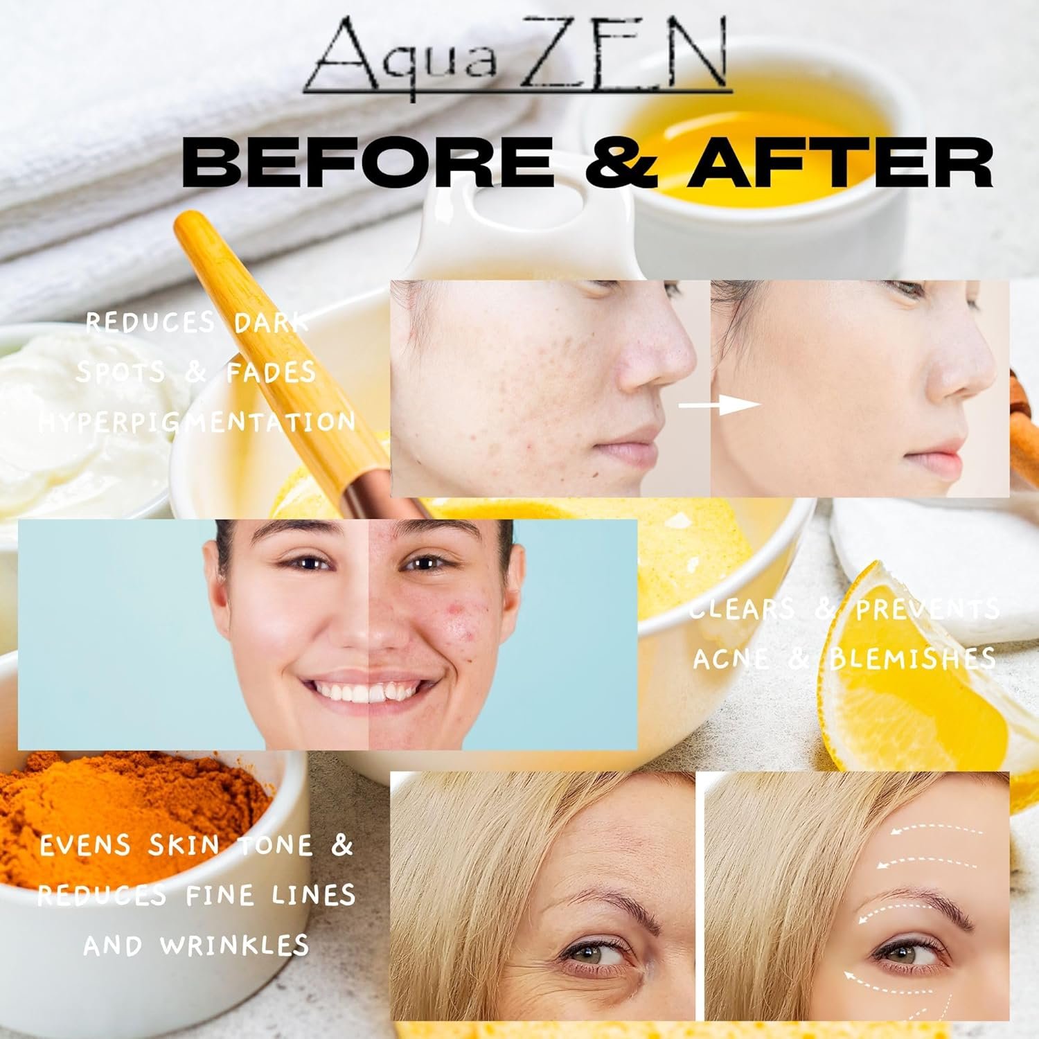 Brightening Formula: Vitamin C and Turmeric work in harmony to brighten the skin, diminish dark spots, and even out skin tone.