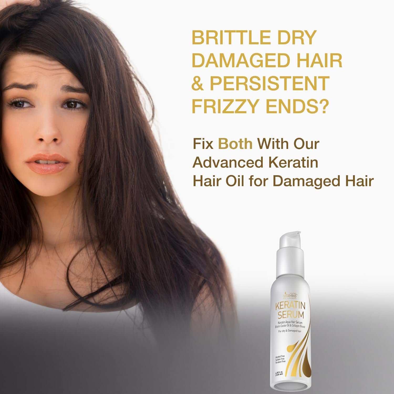 Vitamins Keratin Protein Hair Serum – Anti Frizz Control Hair Oil Repair Treatment – Hair Gloss Shine & Heat Protectant for Frizzy Dry Damaged Hair
