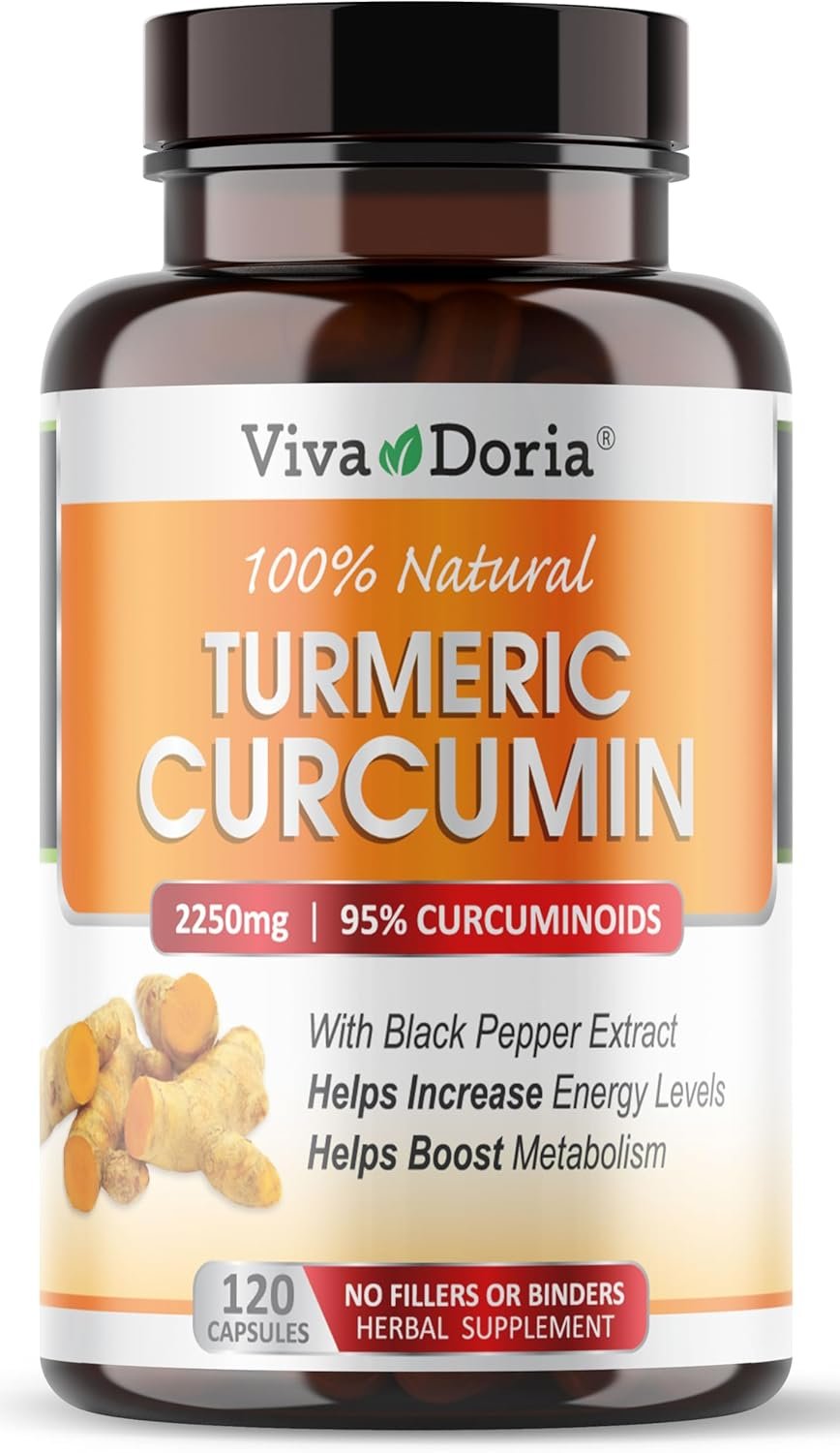 HIGH POTENCY FORMULA: With 2250mg of turmeric per serving and 95% standardized curcuminoids, this supplement provides a high concentration of the most effective turmeric compounds, maximizing your health benefits.