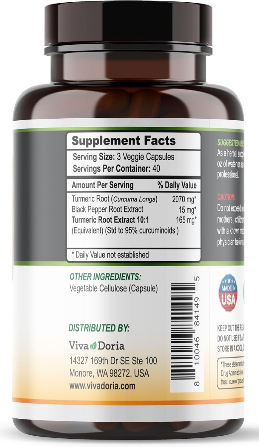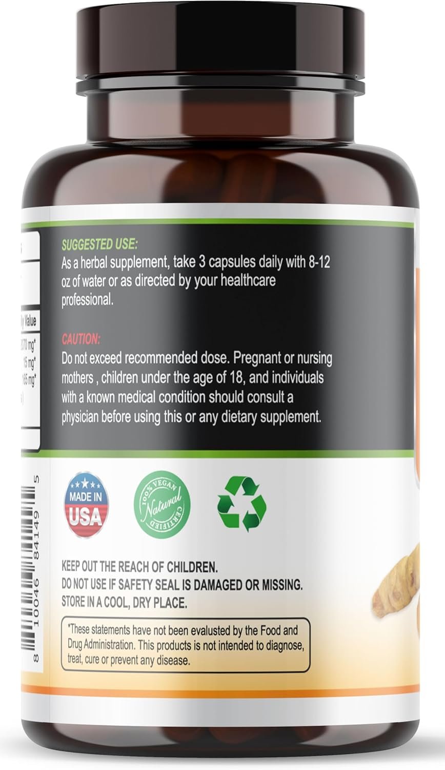 ENHANCED ABSORPTION: Our formula features black pepper extract, a natural booster that enhances the bioavailability of curcumin by up to 2000%, ensuring you get the maximum benefit from each capsule.