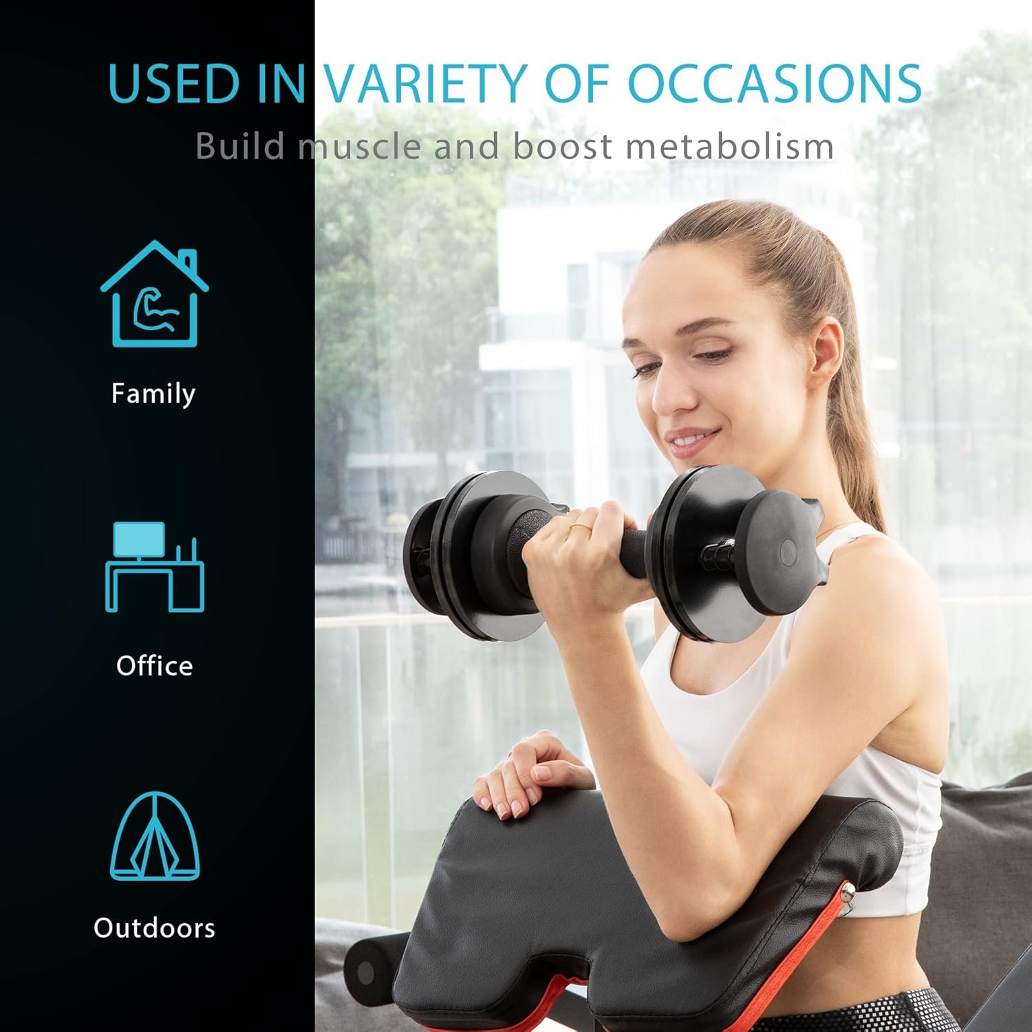 SPACE-SAVING – This adjustable dumbbell is more compact than ordinary dumbbells, occupies less space, and is easier to use and store; 1 set of dumbbells is equivalent to 12 dumbbells; You don’t need to worry about having too many dumbbells will make your home messy, this dumbbell can keep your home well organized