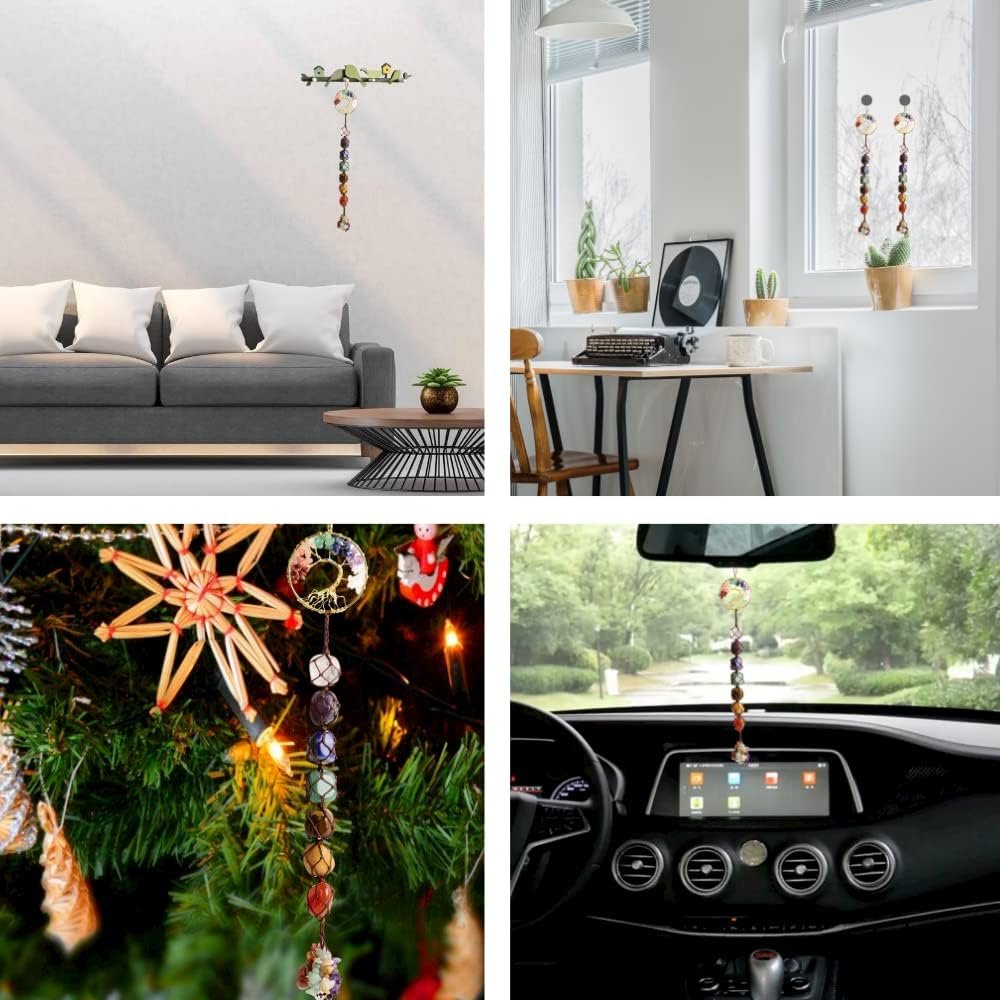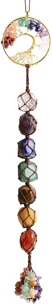 Tree of Life Chakra Stones Healing Crystals Feng Shui Hanging Ornament 7 Chakra Wall Ornament Meditation Hanging Car Ornament Window Ornament