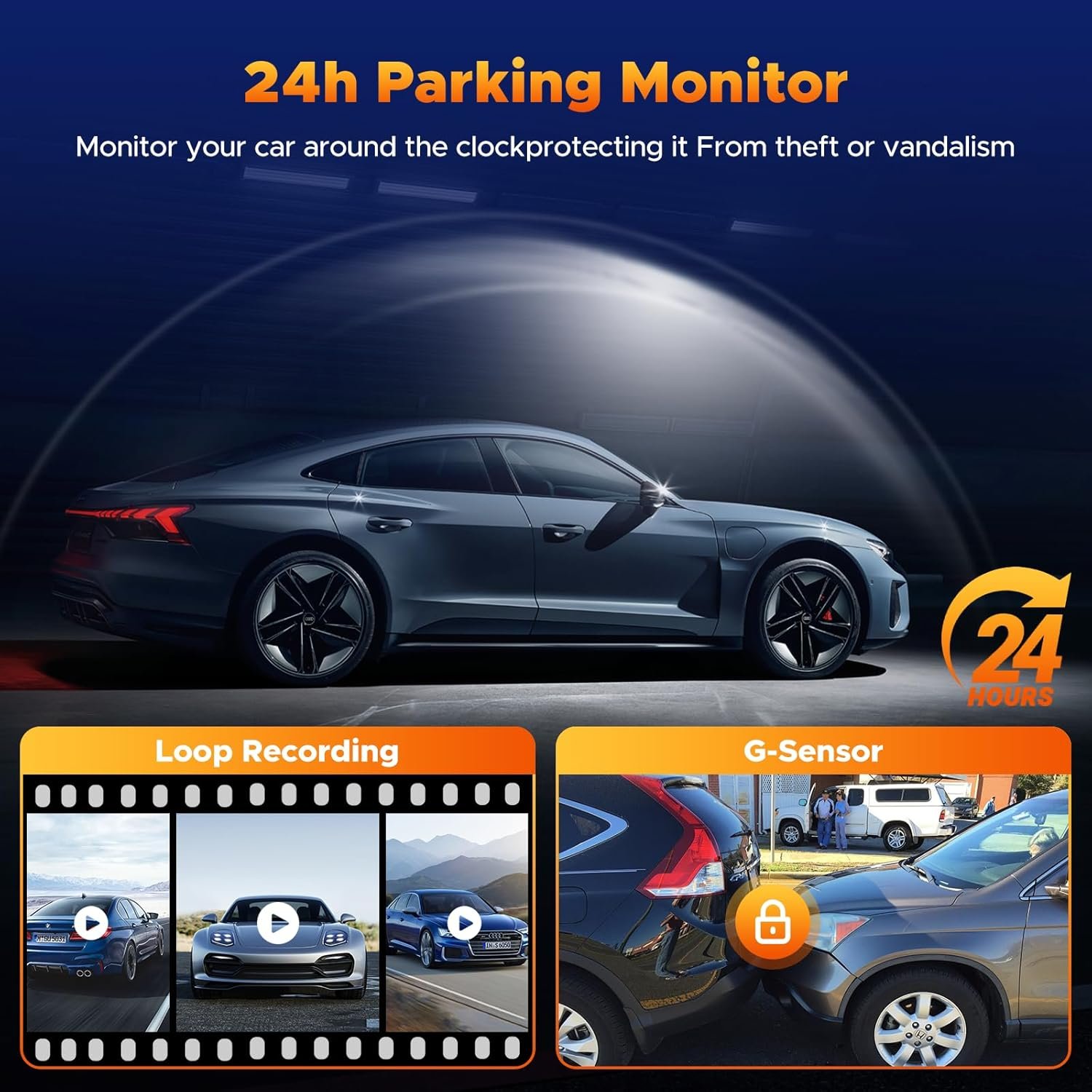 【24-Hour Parking Monitoring, Loop Recording and G-Sensor】Wireless CarPlay screen, seamless loop recording, and automatically overwrite the oldest files (excluding locked videos).When a collision occurs, G-Sensor will lock the accident video It also supports 24-hour parking monitoring. If your parked vehicle is hit or attempted theft, it will be automatically triggered and recorded.(Equipped with 64GB SD card/24-hour parking monitoring needs to be connected to the hardwire kit)