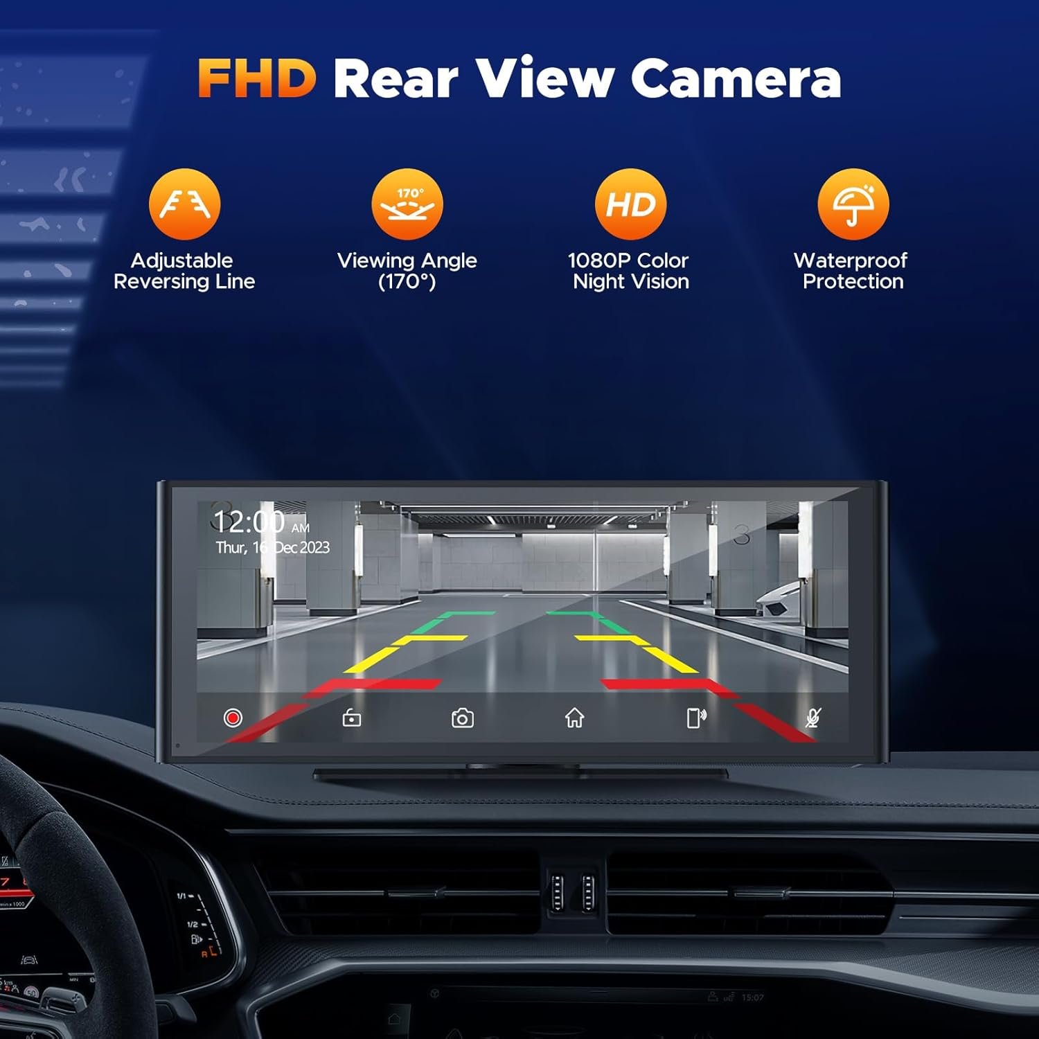 【4K Front + 1080P Rear Dual Dash Cam】Apple carplay screen with 4K front and 1080P rear wide angle dash cam.It supports split-screen display to record the front and rear road conditions and your entire driving process to improve driving safety. When the vehicle is put into reverse gear, the Car Play screen will automatically switch to the rear camera image display to ensure safer reversing and parking.