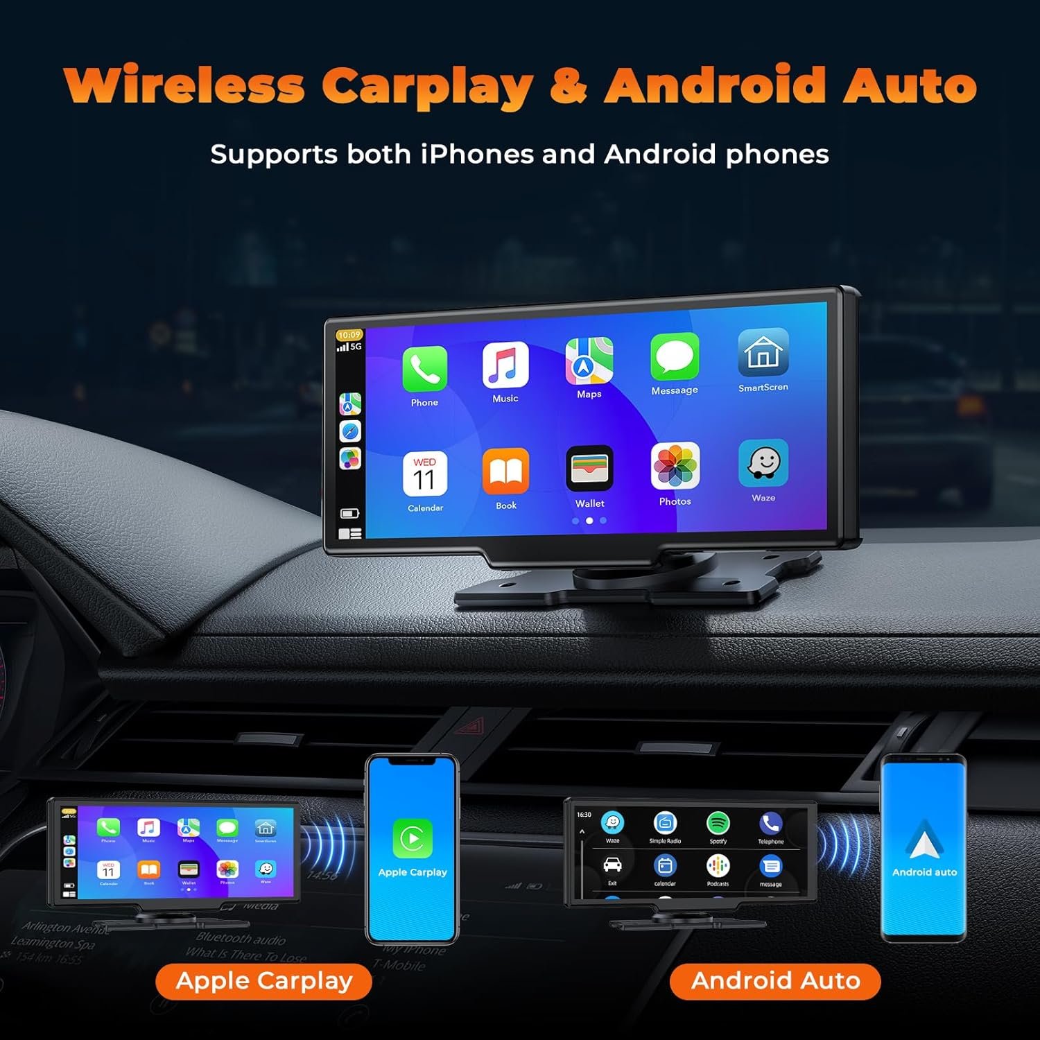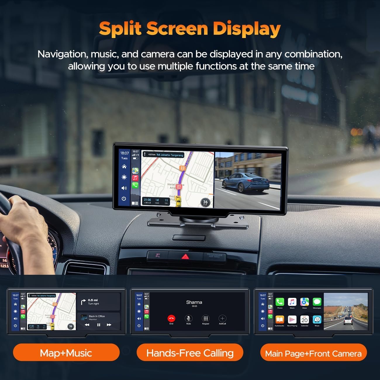 【Android and iOS Mirror Link to Play Videos】Use Airplay and Android Cast to connect your smartphone to the car screen, then you can play YouTube, Tiktok, etc. videos on the carplay car screen. This portable carplay offers a resolution of 1600 x 600 and supports 1080P videos. Even outdoors, you can enjoy the high-resolution big-screen video experience.