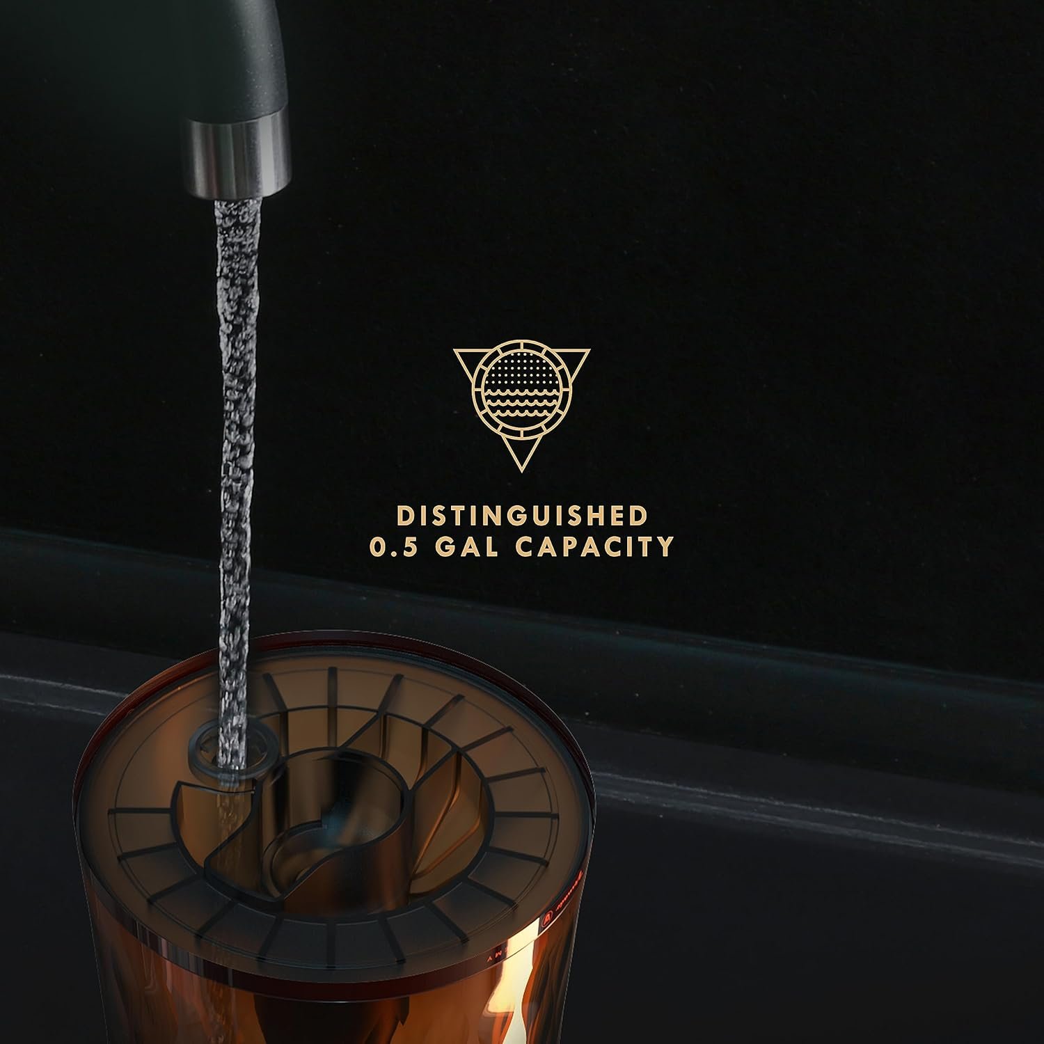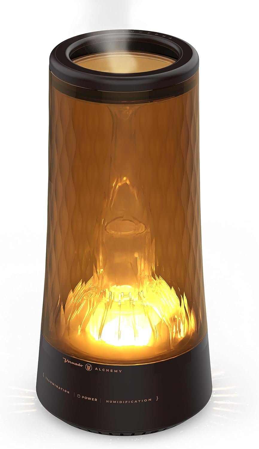 Timeless style for a modern era. The Lucerna 1 is a tabletop ultrasonic humidifier in the Vornado Alchemy line that can hydrate your surroundings with its 0.5-gallon water tank for up to 24 hours on low or 12 hours on high. Its dual fan system efficiently ensures the surrounding area remains comfortable, while the independent ambient light creates a majestic atmosphere unlike any other with 3 brightness settings. Combining these impressive features with luxuriously detailed finishings makes sure the Lucerna 1 elevates any space it occupies. LUCERNA – Humidification doesn’t have to be humble.