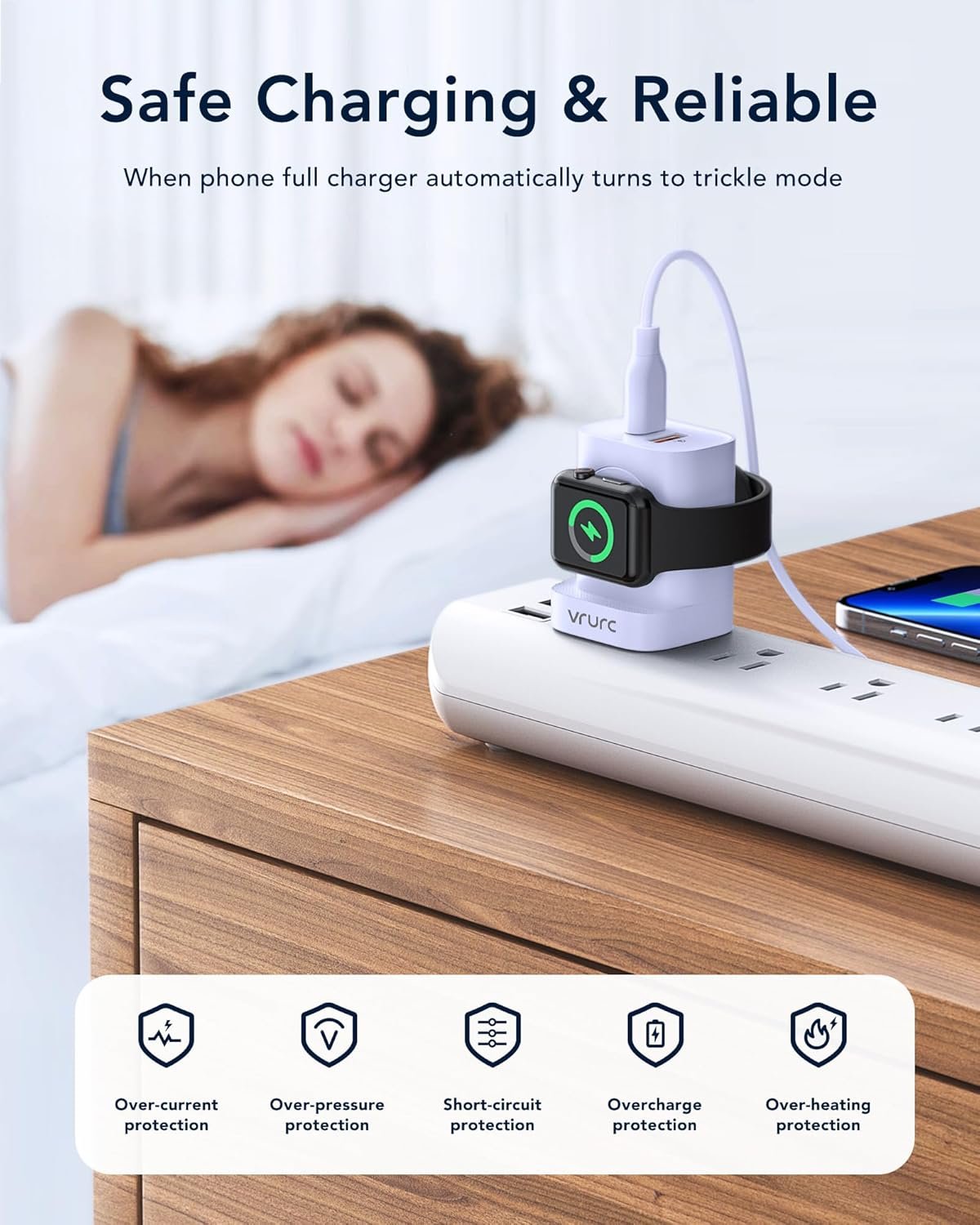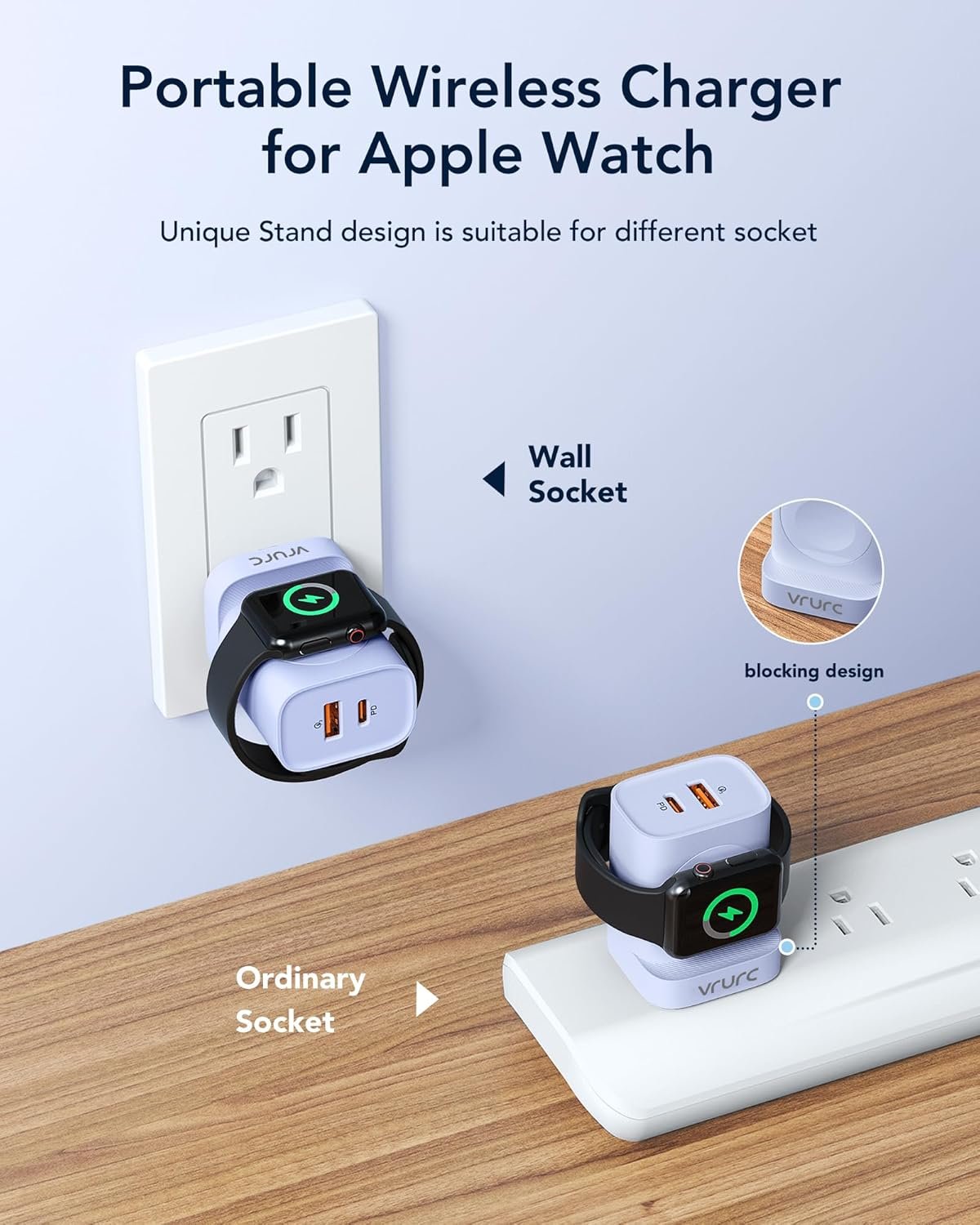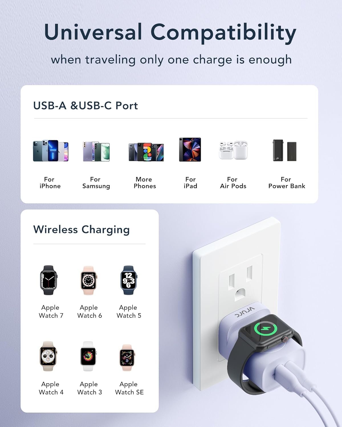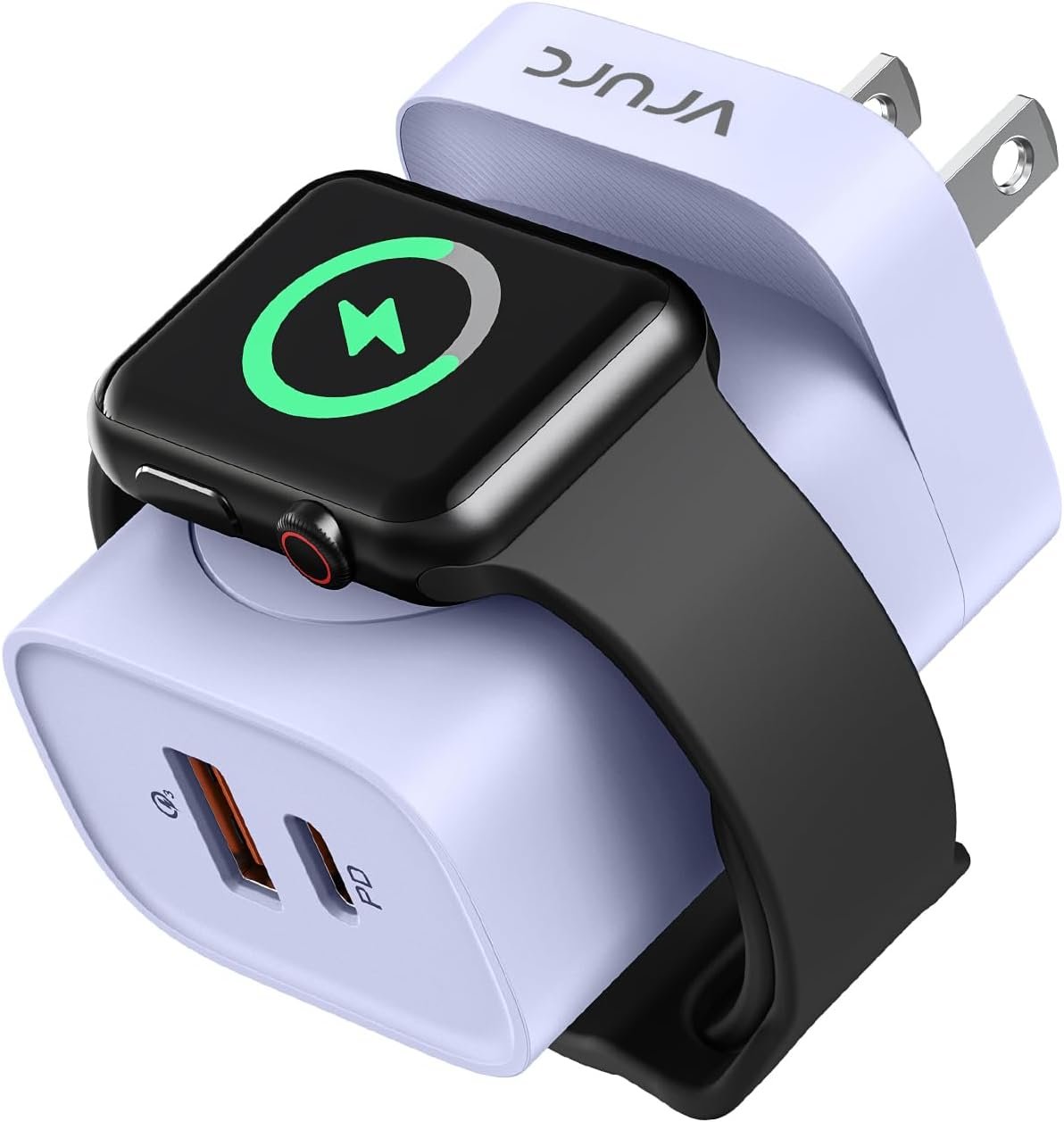 Mean Features For Apple Watch/Dual Ports Fast Charging/Foldable Plug/3-IN-1 Design Max Output USB C Port(20W), USB Port(18W) Compatible for Apple Watch/iPhone/Samsung Phones/Android/Tablets Weight 2.46 Oz Size 2.15* 1.69* 1.18 in