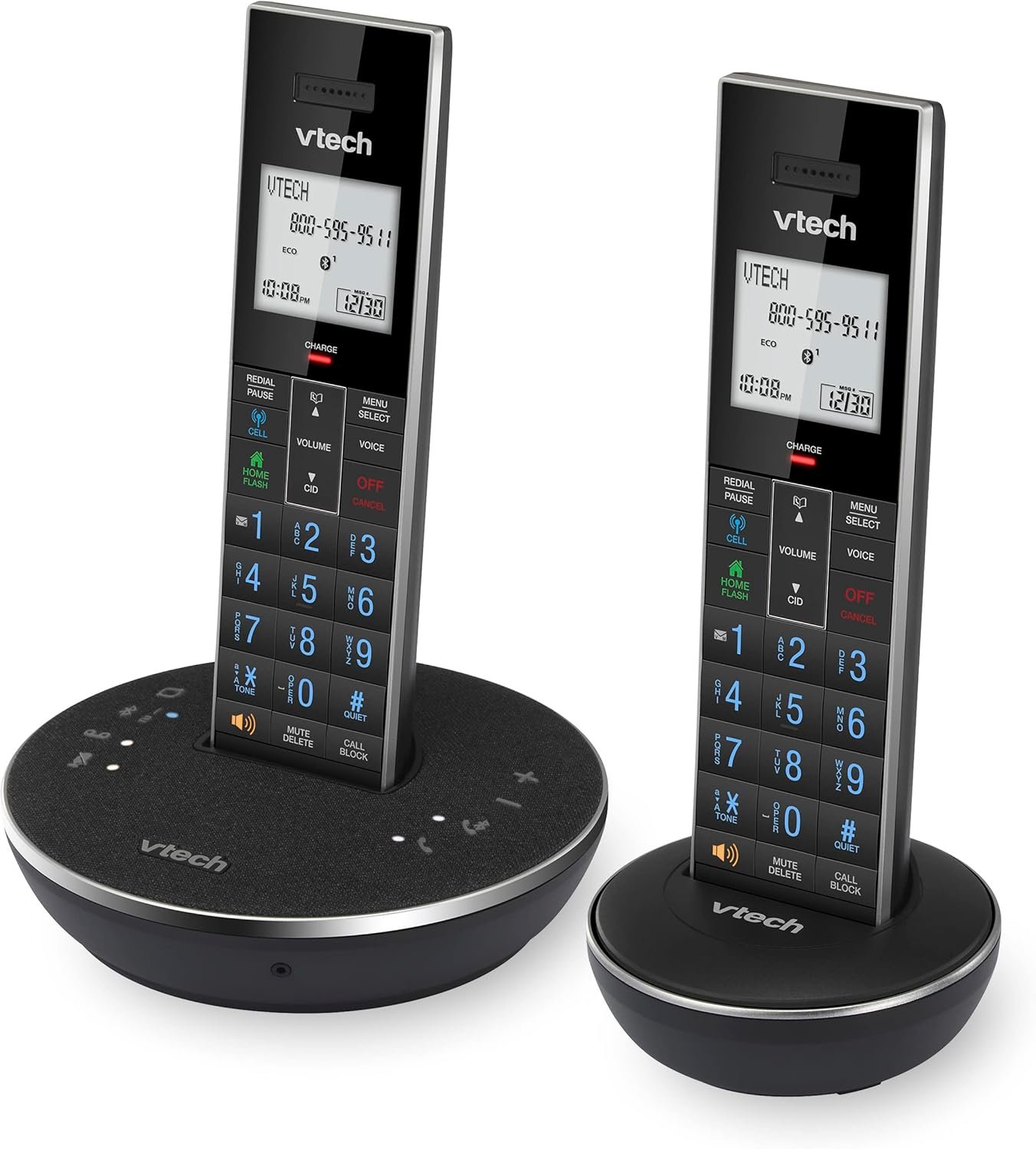 VTech LS6381-2 Bluetooth Speaker with Echo Cancellation, Noise Reduction, Music Streaming, PC/Landline/Cellular Calls, Paired with DECT6.0 Cordless Handset, Answering System, Smart Call Blocker,Black