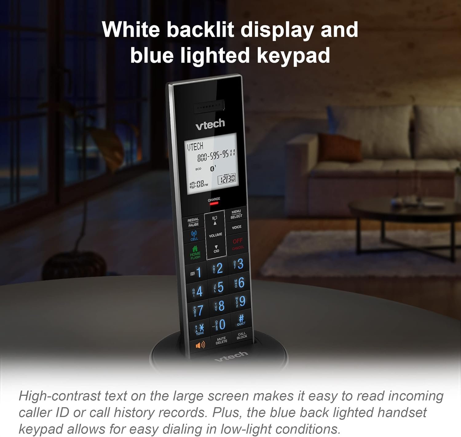 [Large Backlit Screen & Lighted Keypad with Big Buttons] High-contrast text on the large white backlit screen makes it easy to read incoming caller ID or call history records. Plus, the blue back lighted handset keypad allows for easy dialing in low-light conditions.