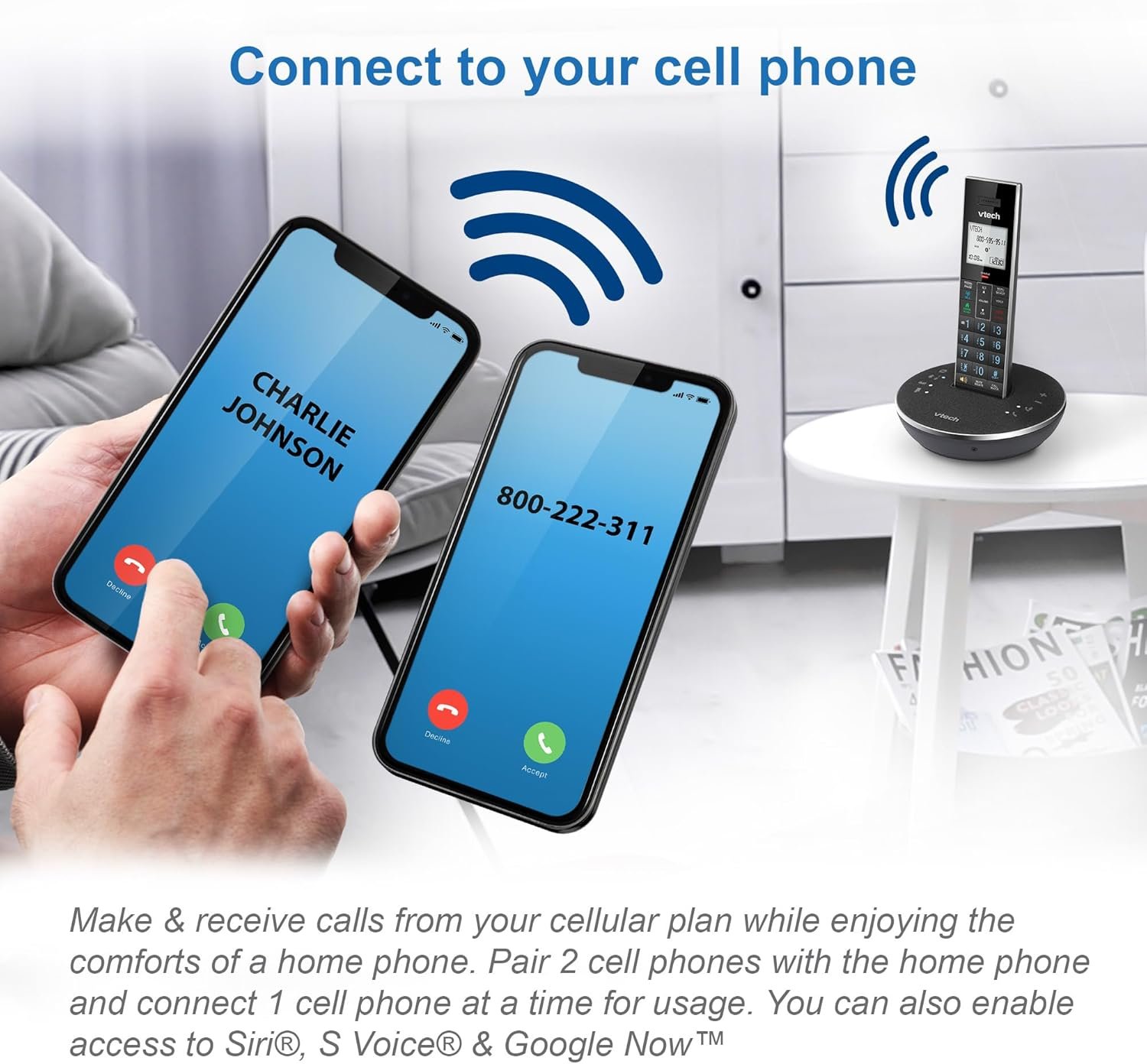 [Make & receive cellular calls using Bluetooth Connect to Cell feature] – Make and receive calls from your cellular plan while enjoying the comforts of a home phone. Pair up to 2 cell phones and connect 1 cell phone for use with landline calls. Access your mobile smart assistants such as Siri, S Voice and Google Now using this phone system.