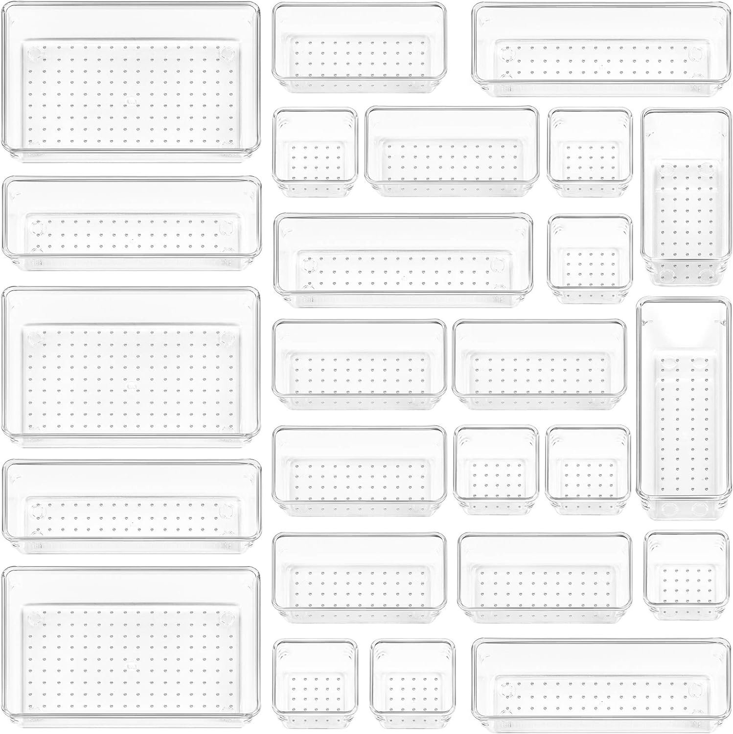 ✔Combination of 4 Different Sizes — One set includes 25pcs storage bins in 4 different sizes, which help you customize combinations to store items and organize drawer in shelf/ closet/ cabinet/ dresser . Includes: 9 x 6 x 2 inches (3pcs), 9 x 3x 2 inches(6pcs), 6 x 3 x 2 inches(8pcs), 3 x 3 x 2 inches(8cps).
