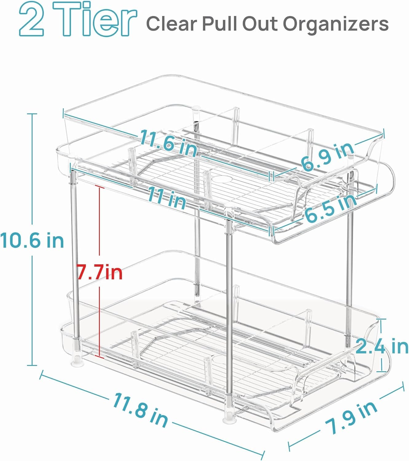 Multi-Purpose Clear Organizer—Our 2-tier sliding drawer organizer with dividers is an excellent solution for family storage needs. It offers versatile organization options for various spaces in your home, which can be effectively organized under the sink, pantry, medicine cabinet, and refrigerator. It’s a practical and space-saving solution to keep your belongings neatly arranged and easily accessible.