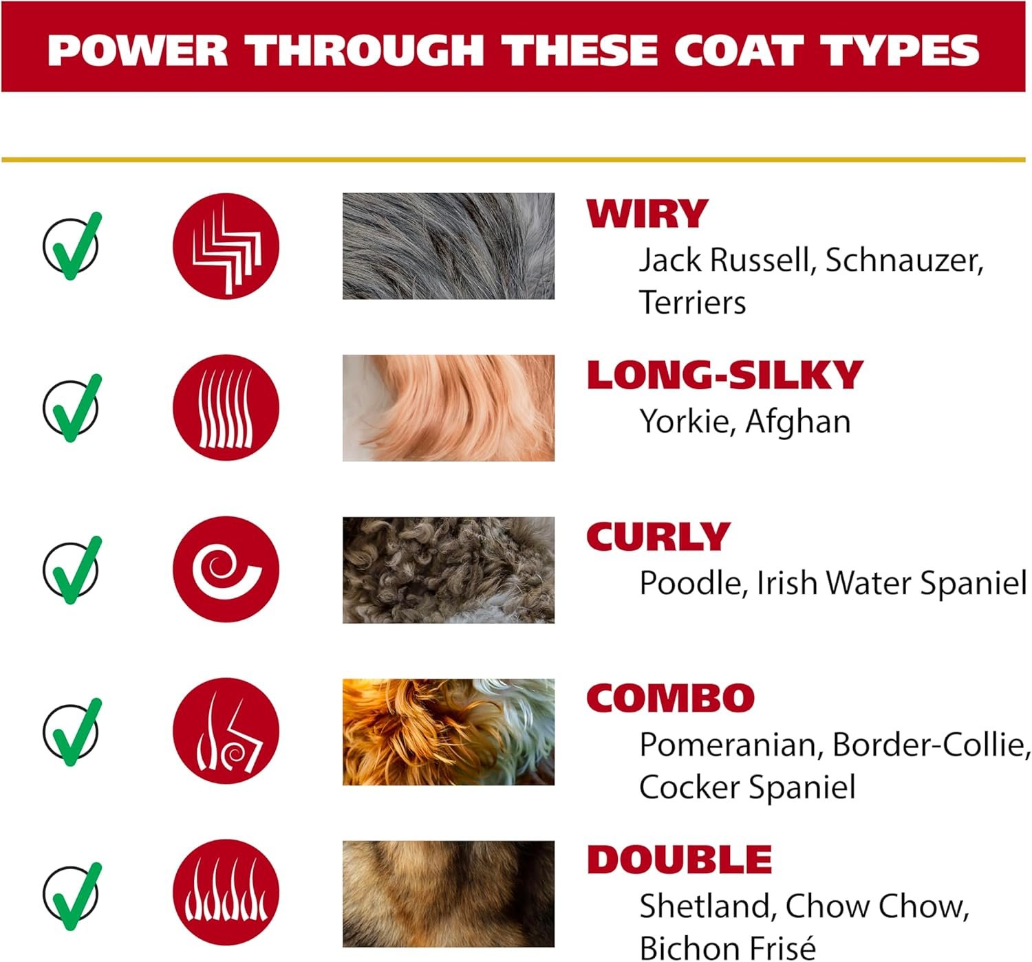 Snag-Free Grooming: Our heavy-duty dog clippers feature self-sharpening blades that cut through all pet hair types effortlessly. These blades stay sharper longer, ensuring smooth, snag-free grooming sessions.