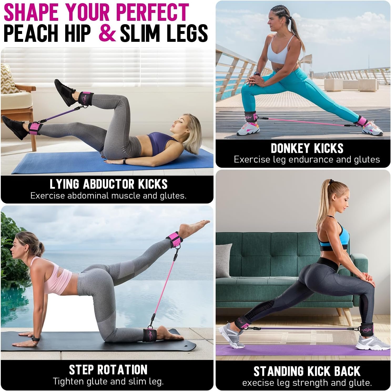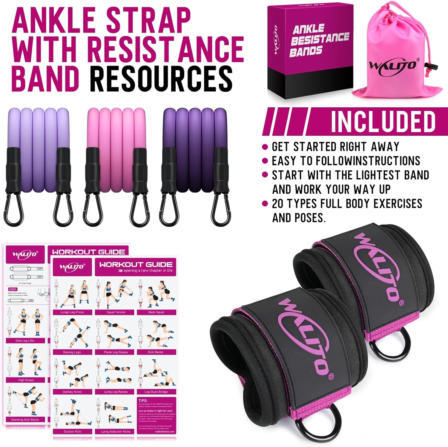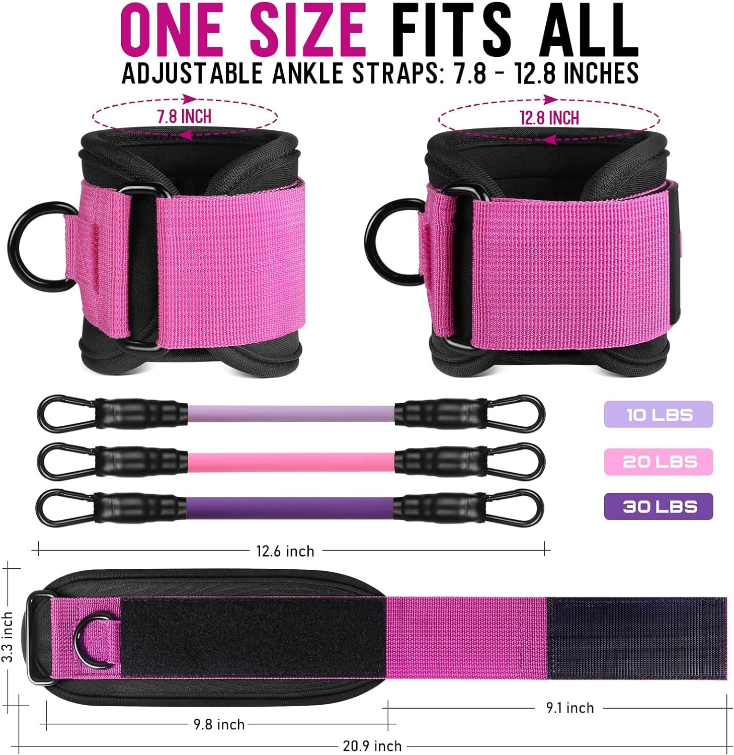 3 Different Levels and Fits For All – WALITO ankle resistance bands provide you with 3 levels: 10/20/30 lb. All home gym resistance bands can be used individually or any combination to a maximum equivalent of 60 lbs. Adjustable design system can adapt to different people to booty, leg exercise, 10 minutes a day, that you can quickly activate your buttocks and slim your legs.