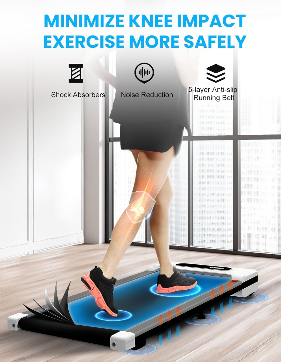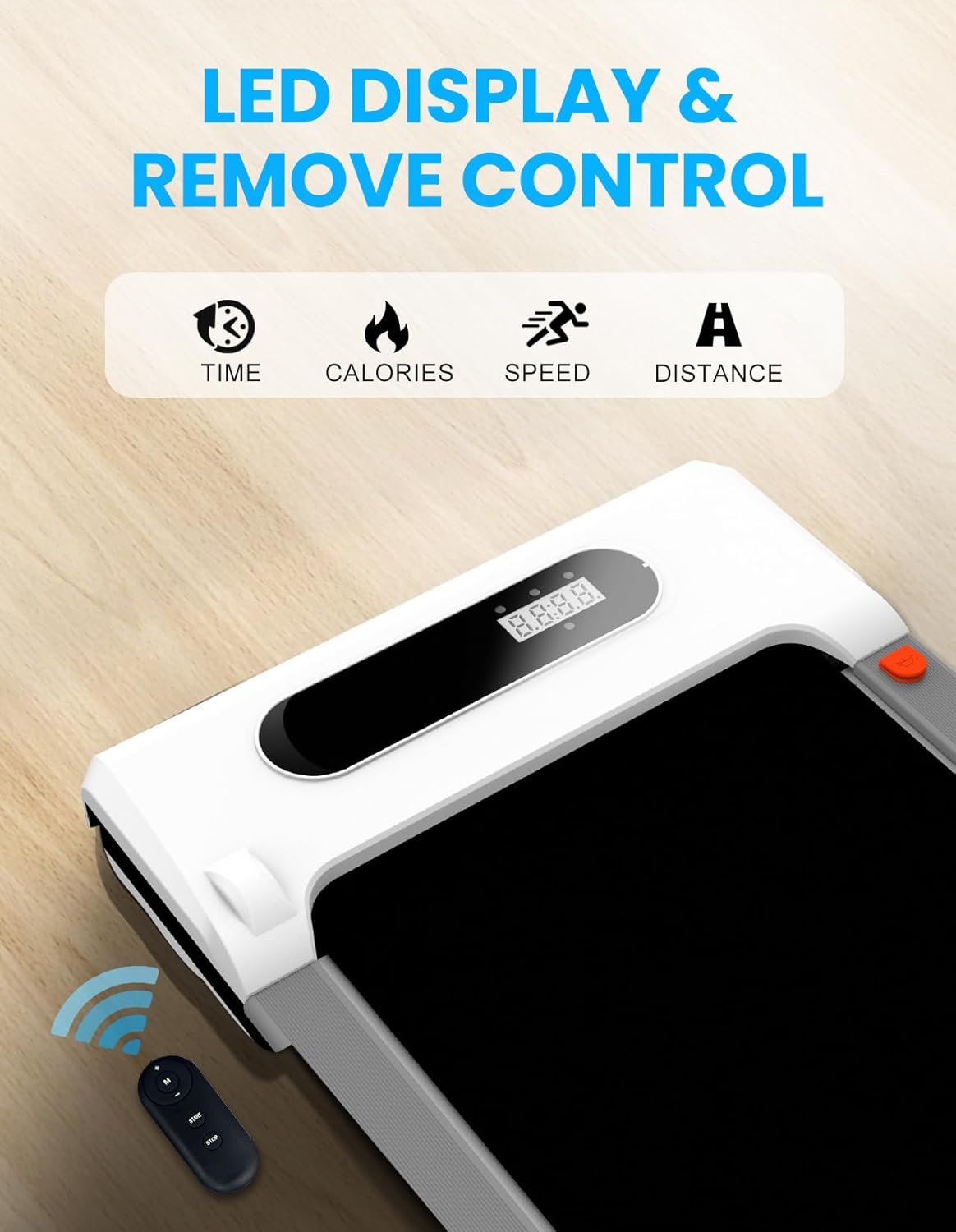 MMULTI-FUNCTION LED DISPLAY – Walking pad with LED display shows exercise speed, time and calories burned. The treadmill with a remote control making your exercise more convenient and comfortable.