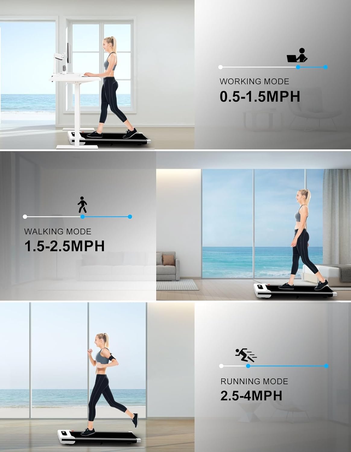 POWERFUL MOTOR – Walking pad treadmill with a powerful 2.25HP motor,allows you to choose from 12 speed options ranging from 0.5 to 4.0mph. Under desk walking pad treadmill for home/office makes your cardio training quieter, without disturbing your family or your neighbors.