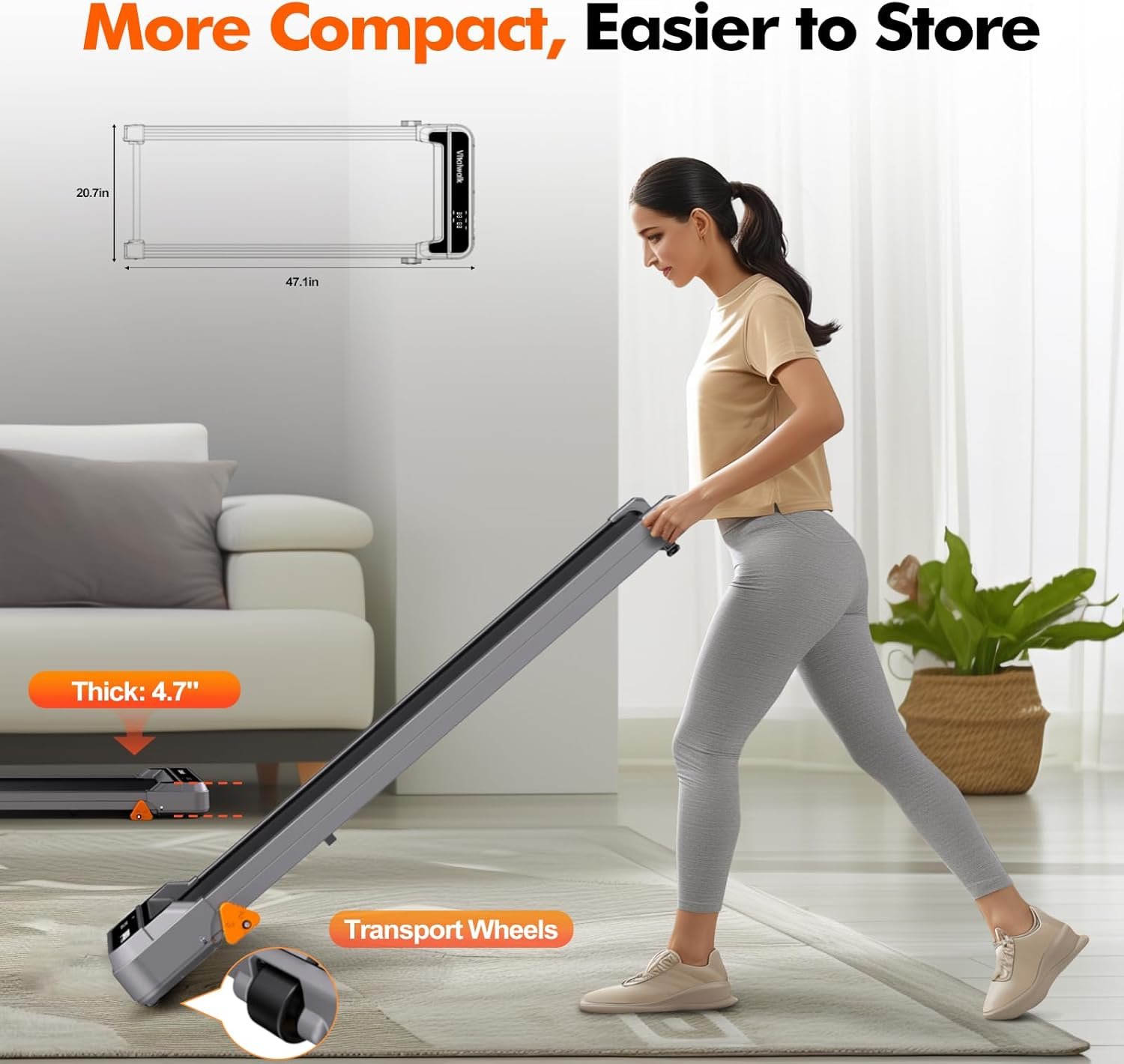 💯【Vitalwalk Trust】Portable treadmill arrives fully assembled and can be used right out of the box. This mini treadmill weighs only 39.6 pounds, and compact size of 47.1″x20.7″x4.7″.
