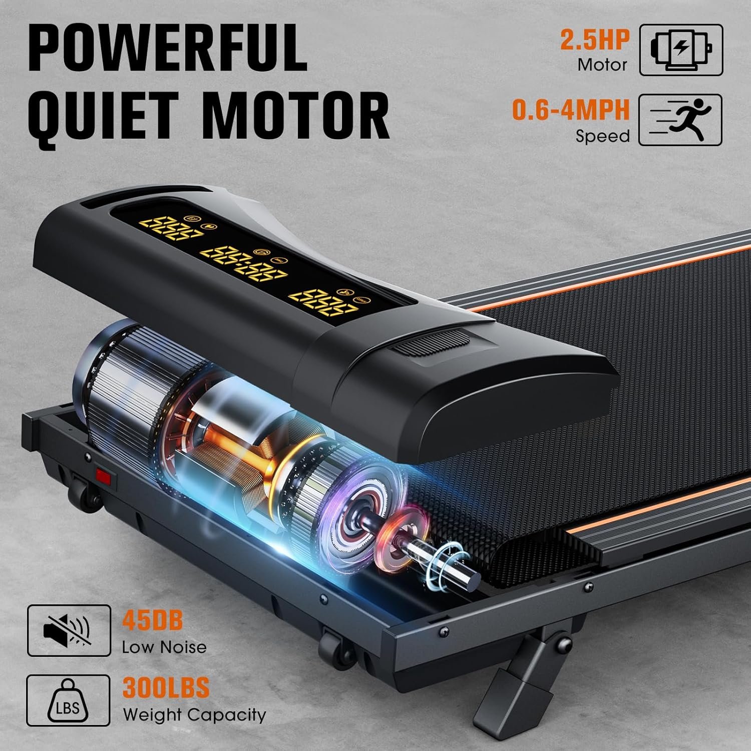 【2.5HP Silent Motor&Treadmill with Incline】Equipped with a powerful 2.5HP motor, it operates with a noise level of less than 55 decibels. The walking mat treadmill with incline can be easily installed under the table, allowing you to walk while working at home or in the office, enhancing your health. The treadmill can manually adjust the inclination by 8% Combined with the APP to select a custom mode. It is immersive and increases your challenge.