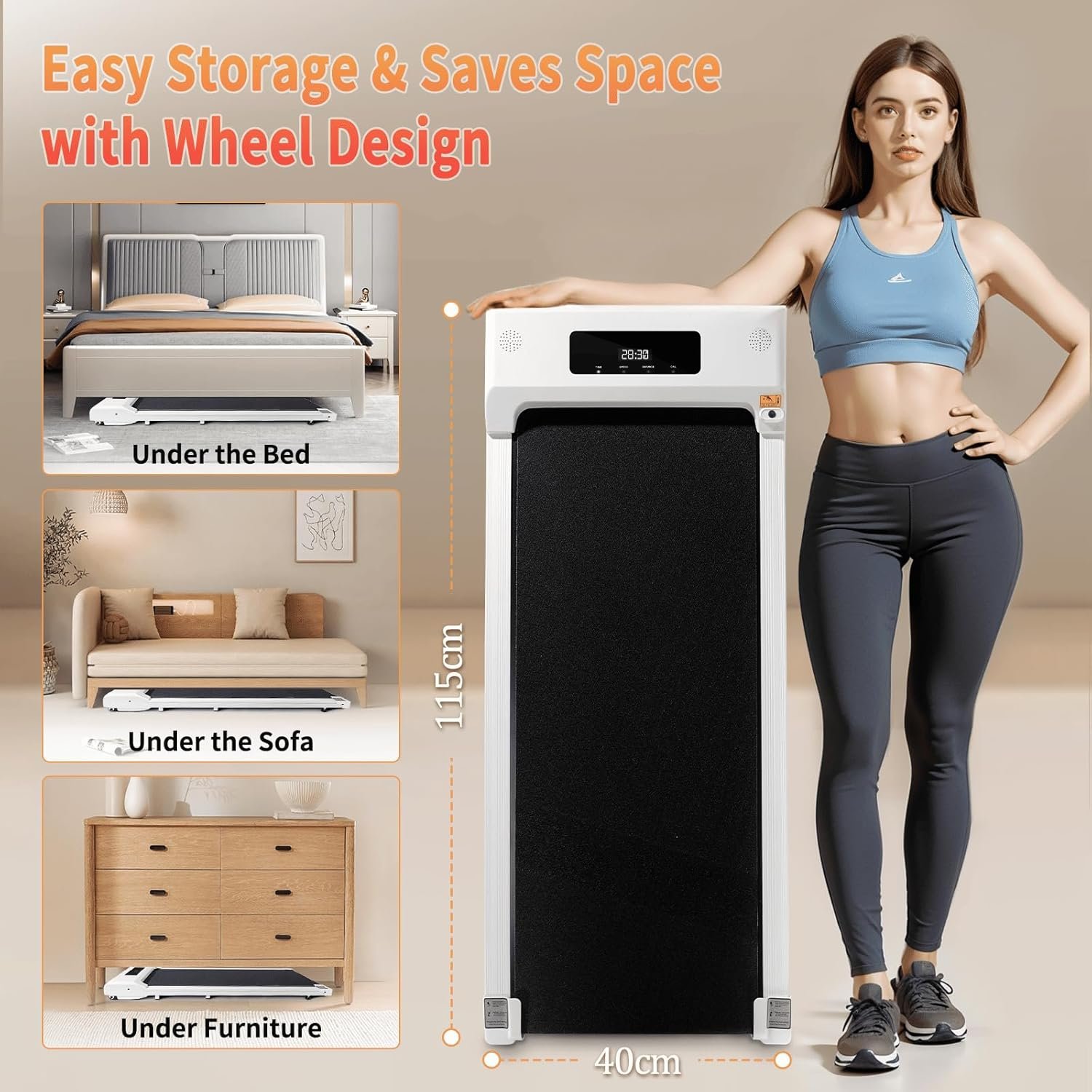 Installation-free and Space-saving: The Walking Pad Treadmill arrives fully assembled and is ready to use right out of the box. The small treadmill’s compact design is especially suitable for users with small or limited spaces, and you can easily put it under a table, bed, or sofa without taking up extra space. The built-in wheels make the treadmill very easy to move, so you can place it wherever you want to do fitness activities and enjoy the fun of exercise anytime, anywhere.