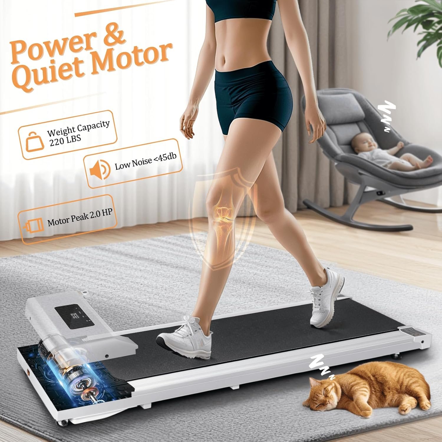 Powerful Motor: Our walking treadmill is equipped with a powerful 2.0HP motor, providing ample power for all your exercise needs. Whether it is walking or efficient jogging, it can handle it with ease. The treadmill has been put through its paces thousands of times, ensuring its horsepower data is as reliable as a trusted old friend.