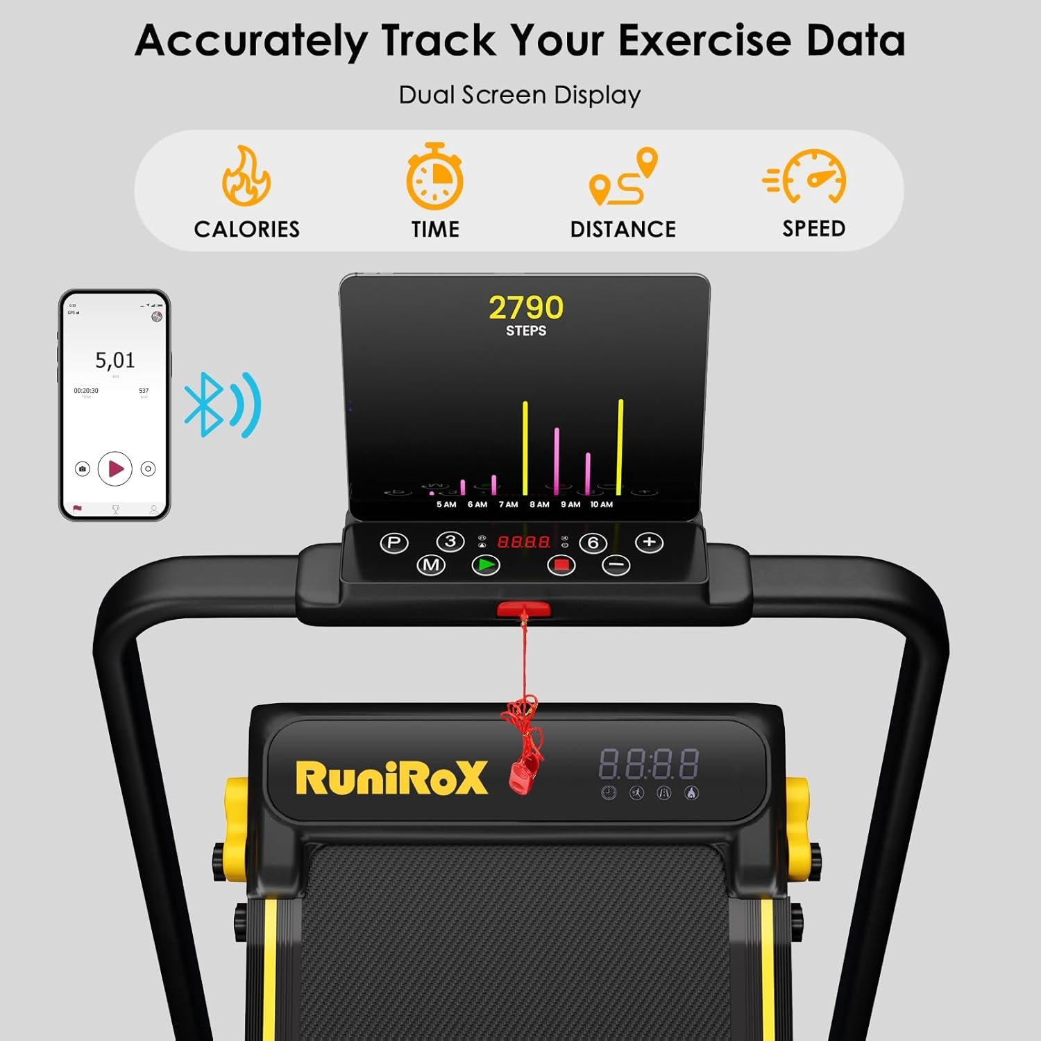 Safe and Stable Performance: The RuniRox inclined treadmill features an ergonomically designed frame, with a distinctive shape that can be inserted and rotated to offer three incline options. The increased incline will help you burn more fat, strengthen your glutes and leg muscles