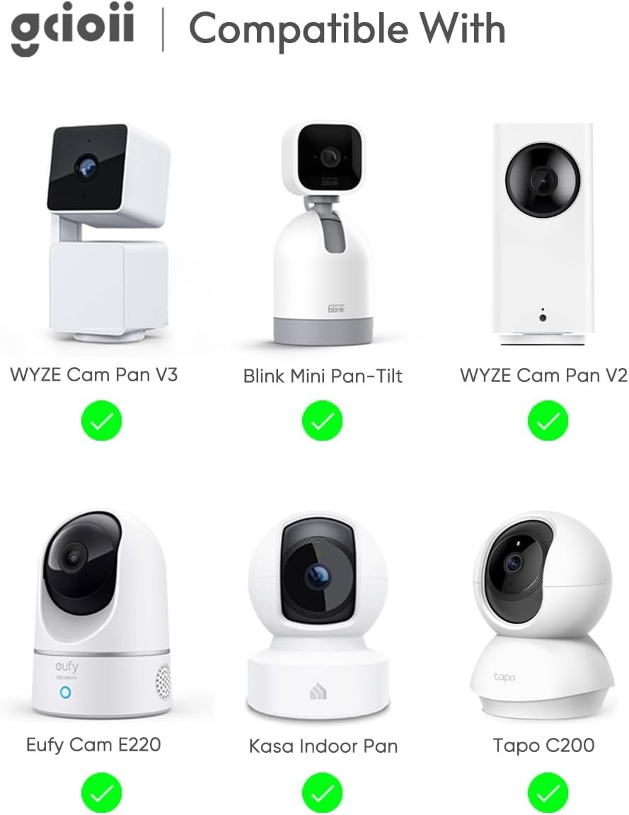 【Exclusive Design】 Specifically designed for WYZE Cam Pan V3/V2/V1, Blink Mini Pan-Tilt, Eufy Cam E220 , Kasa Indoor Pan and Tapo C200.Realize outdoor 360° monitoring perspective.