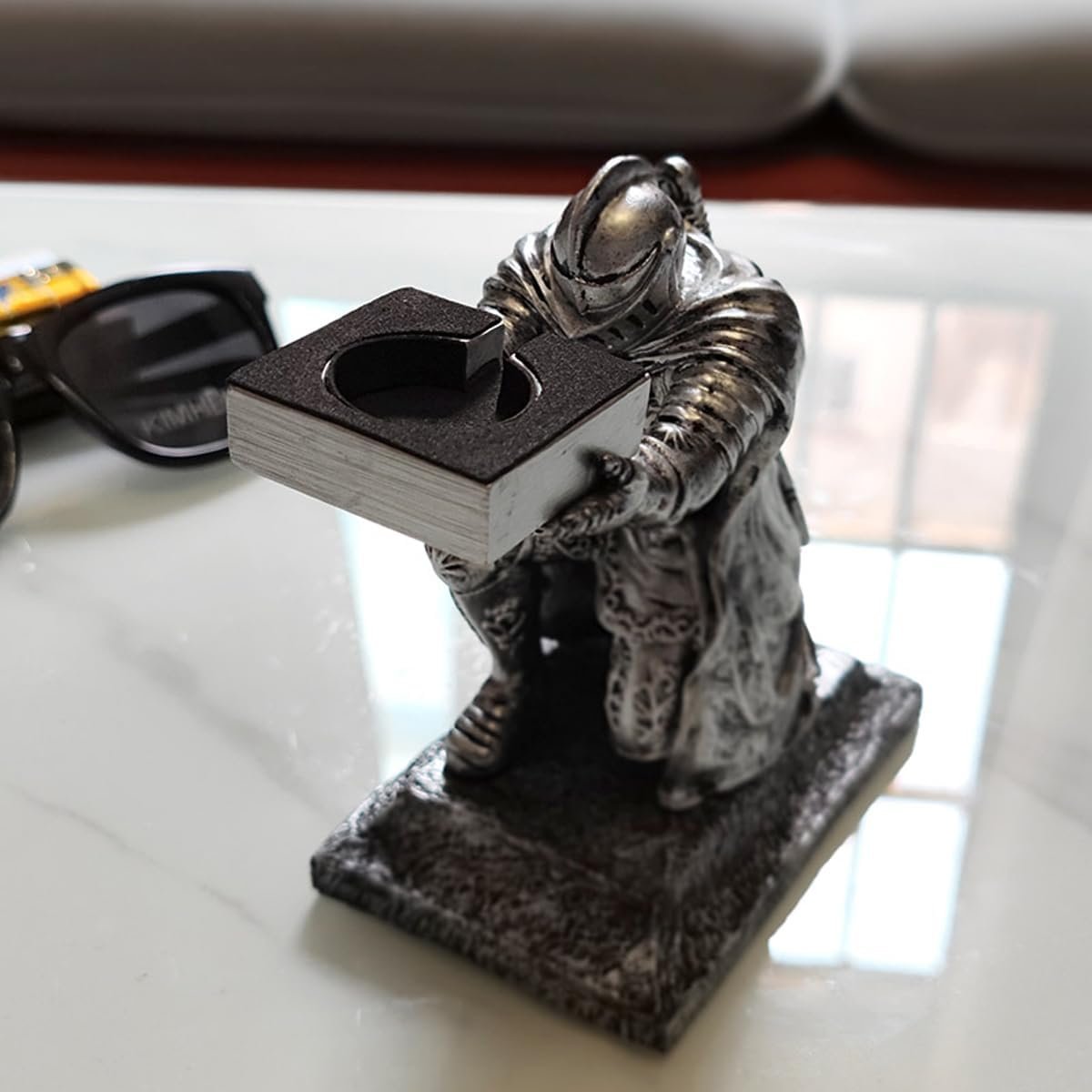 Knight Statue Design:The watch holder is be designed in kneeling knight,which is a nice smart watch display holder and charging dock,as convenient as possible by acting as a nightstand or desk dock stand that keeps charger securely in place and cable tidy.it is also an cooling desk decoration statue holder for office home.