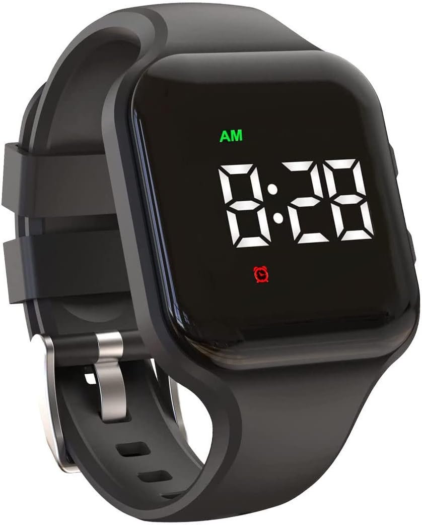 WATERPROOF & SAFETY TESTED – No worry about take hot shower with it on. The improved vibrating watch is lightweight, made of soft silicone wristband, designed specifically to fits approx. 4” to 7.5” wrist.