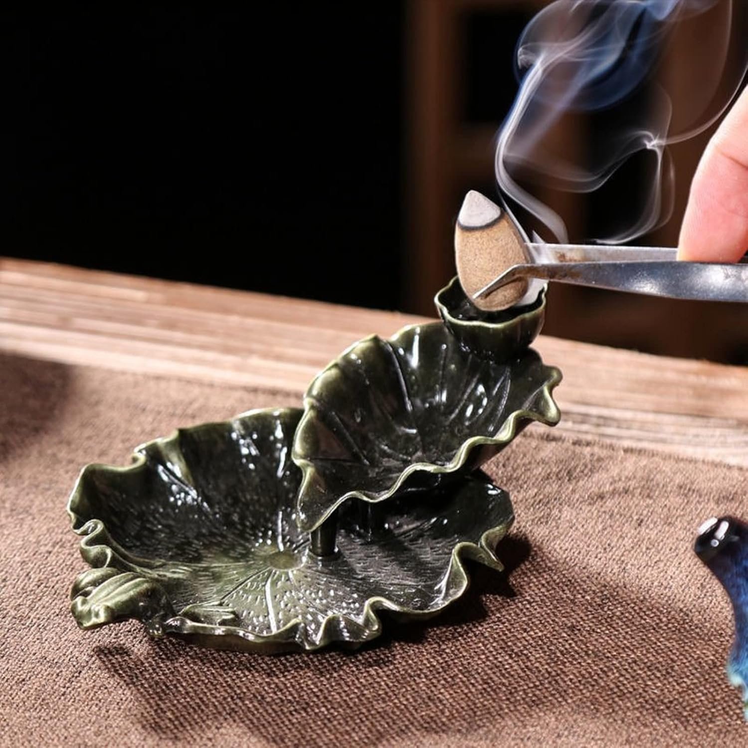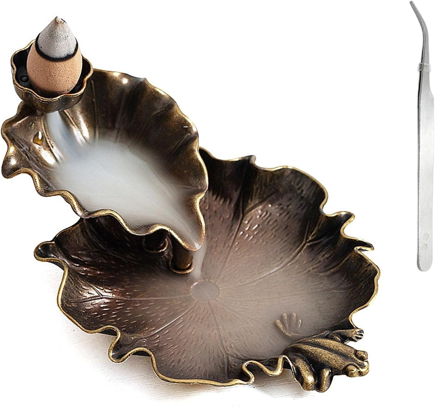 [Great Value]: You will get Lotus and Frog desgined Waterfall Backflow Incense Cone Holder with an incense cone tweezer .