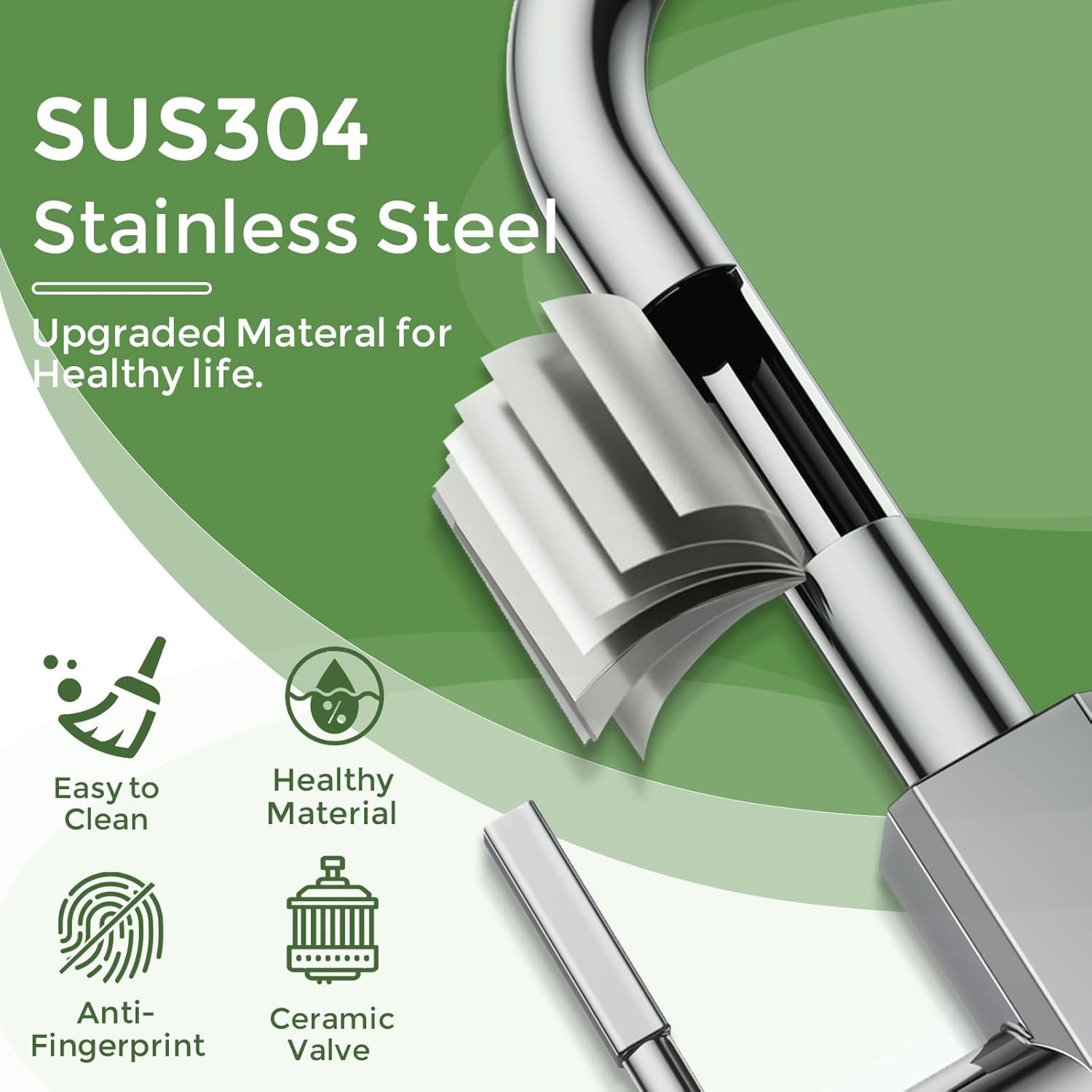 Premium Quality Material: Hurran kitchen faucet with pull-down sprayer is made of SUS 304 stainless steel, which is corrosion and rust-resistant and durable. The upgraded ceramic valve core passes tens of thousands of cycle tests to ensure tight switching and prevent water leakage