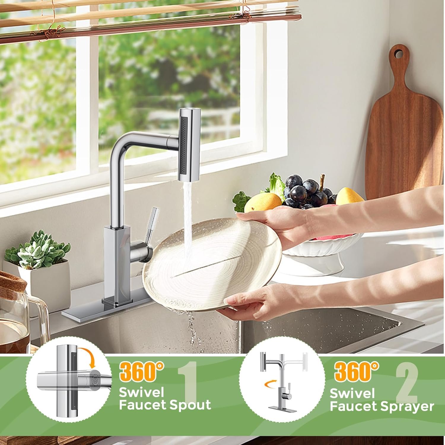 Convenient One-handed Operation: The faucet is designed with a single handle for the convenience of the customer’s daily use. Users can easily control the water temperature and flow using only one hand, while the other hand can handle other things, making kitchen activities smoother and less time-consuming
